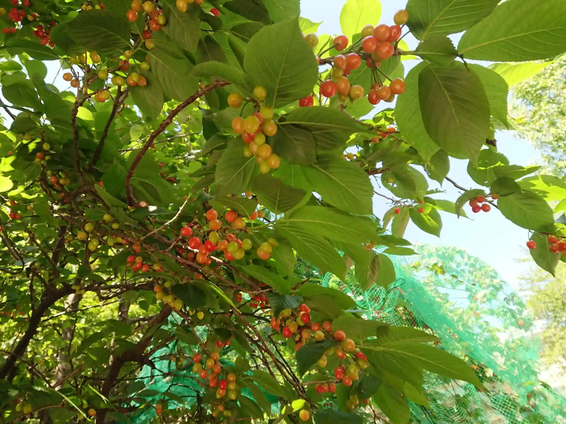 山門の内側に赤い実を付けた木がありました。網が被せてありましたが、鳥が集まってつついていました。