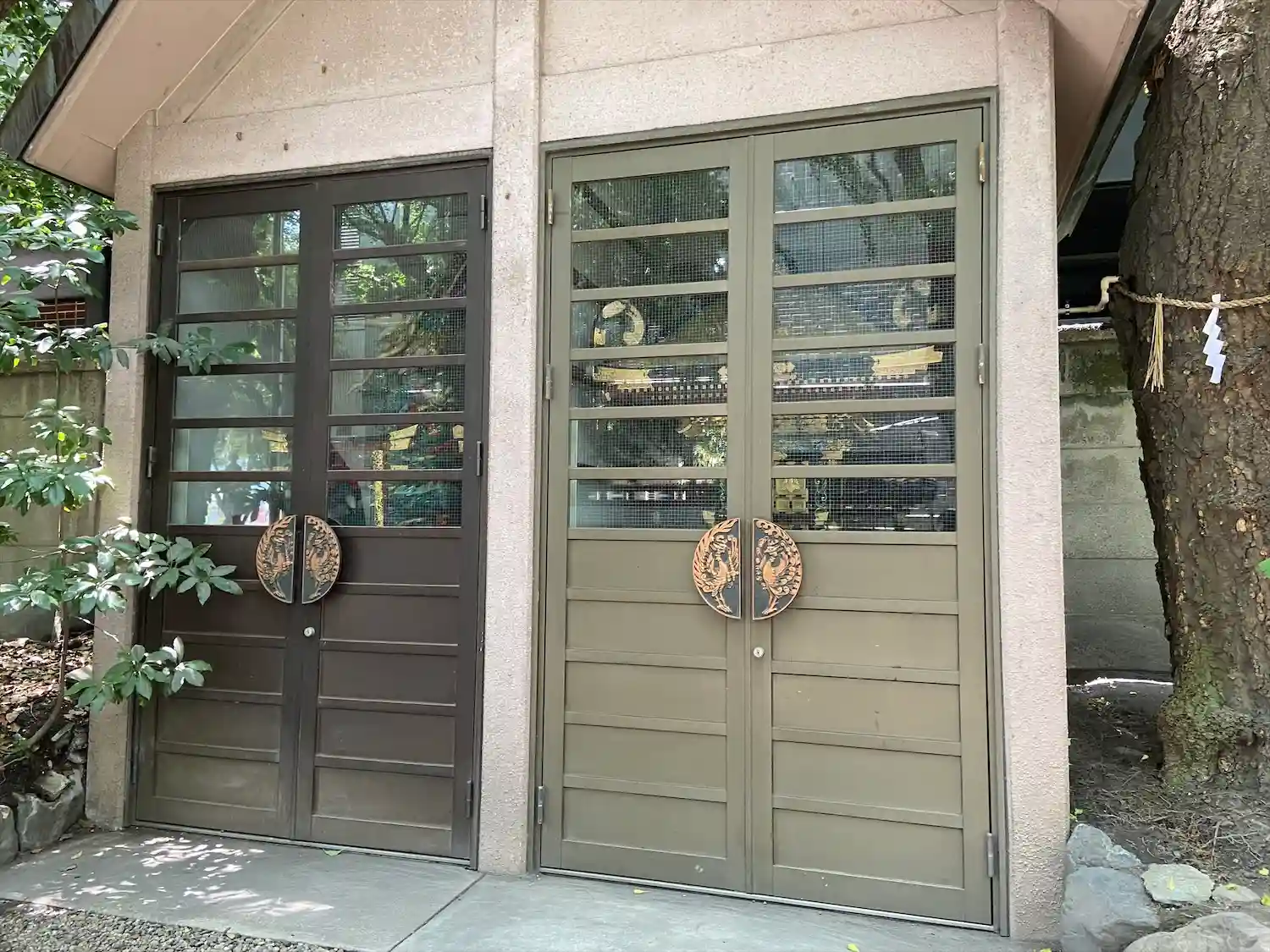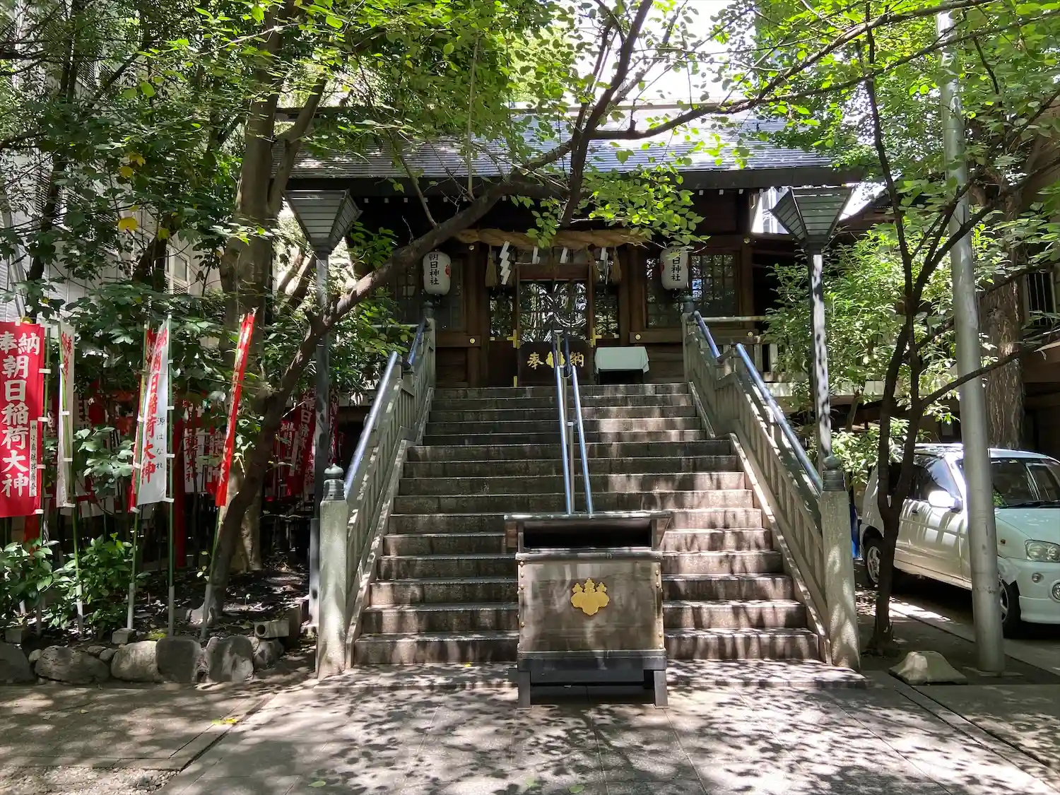 すぐお隣に交番があって神社の中にパトカーが停まっていました。
