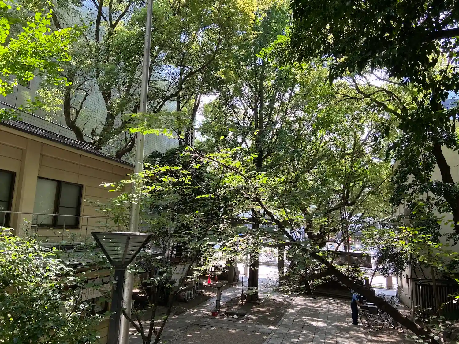 通りを歩いているとビルのすき間に森が出現します。