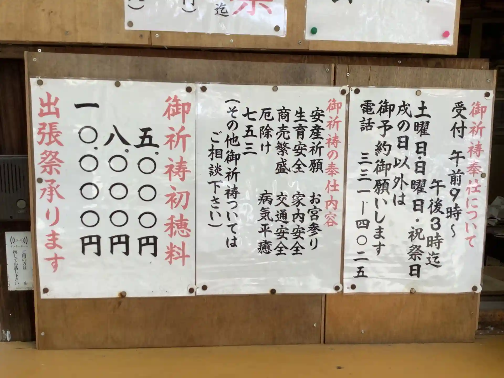 御祈祷のご案内、種類が多いです。