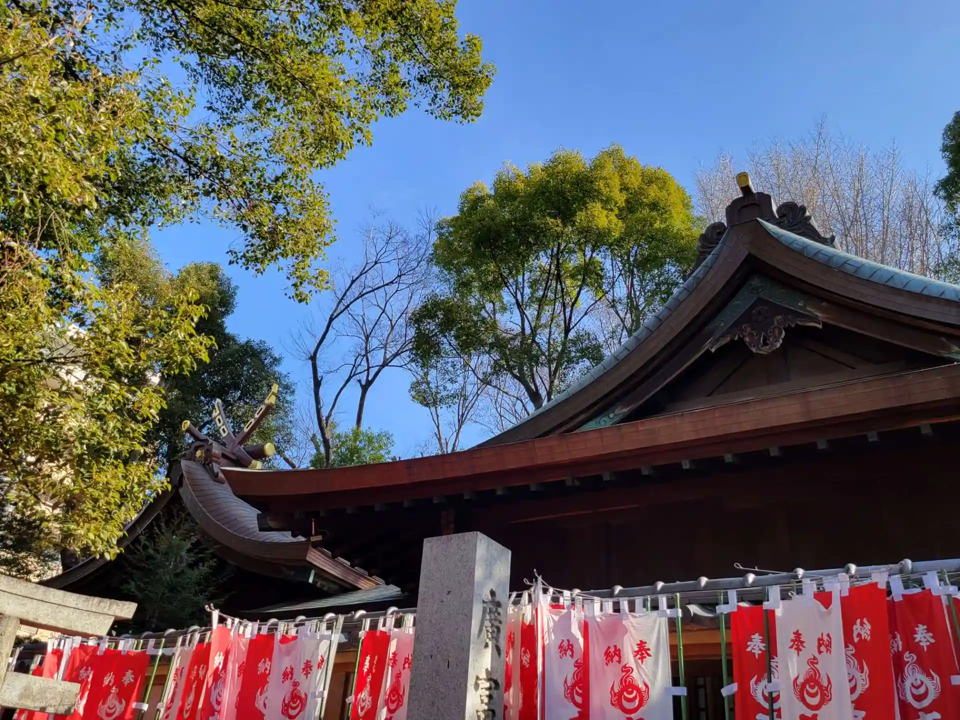 稲荷神社の赤い鳥居もきれいでした。