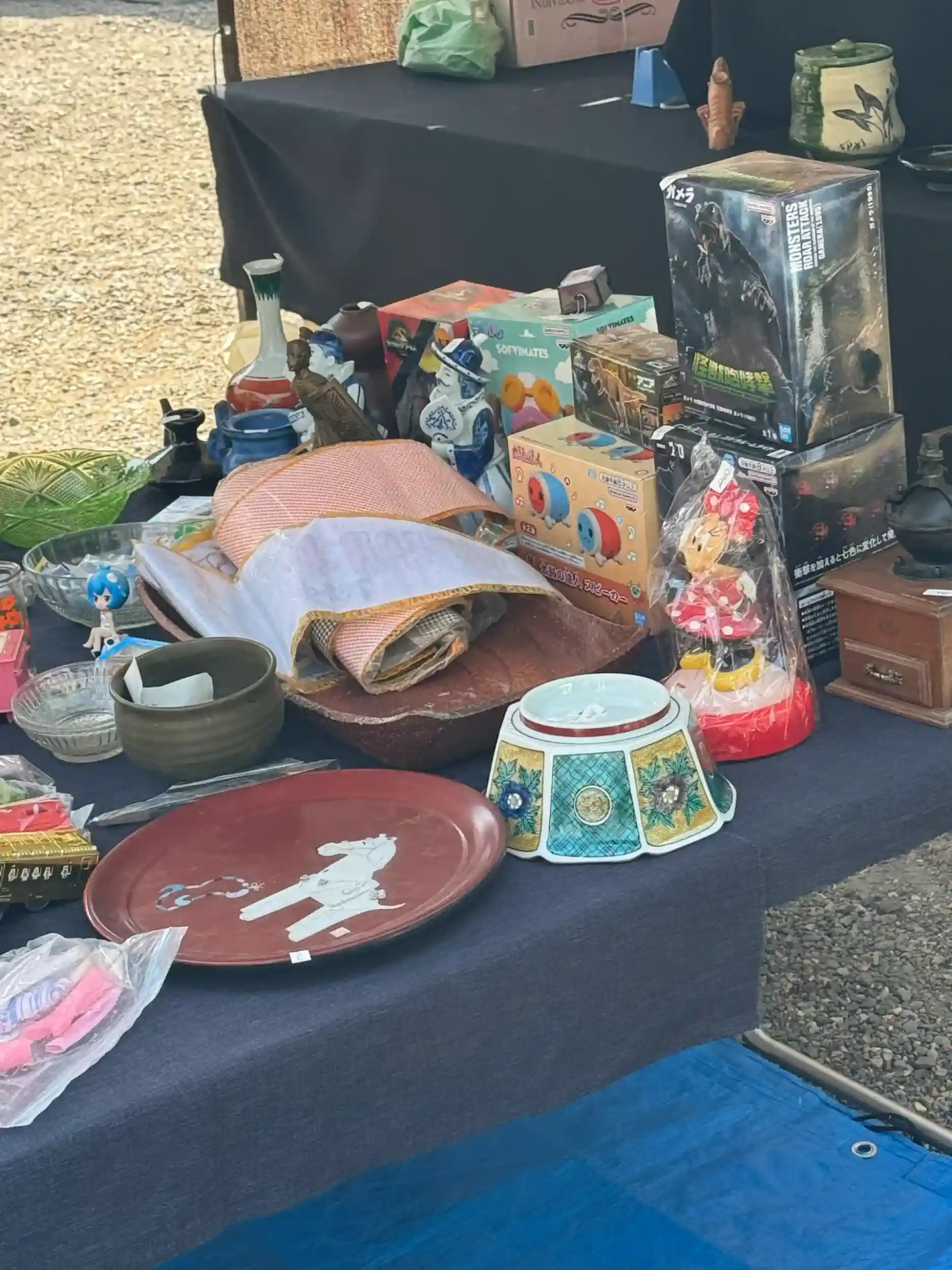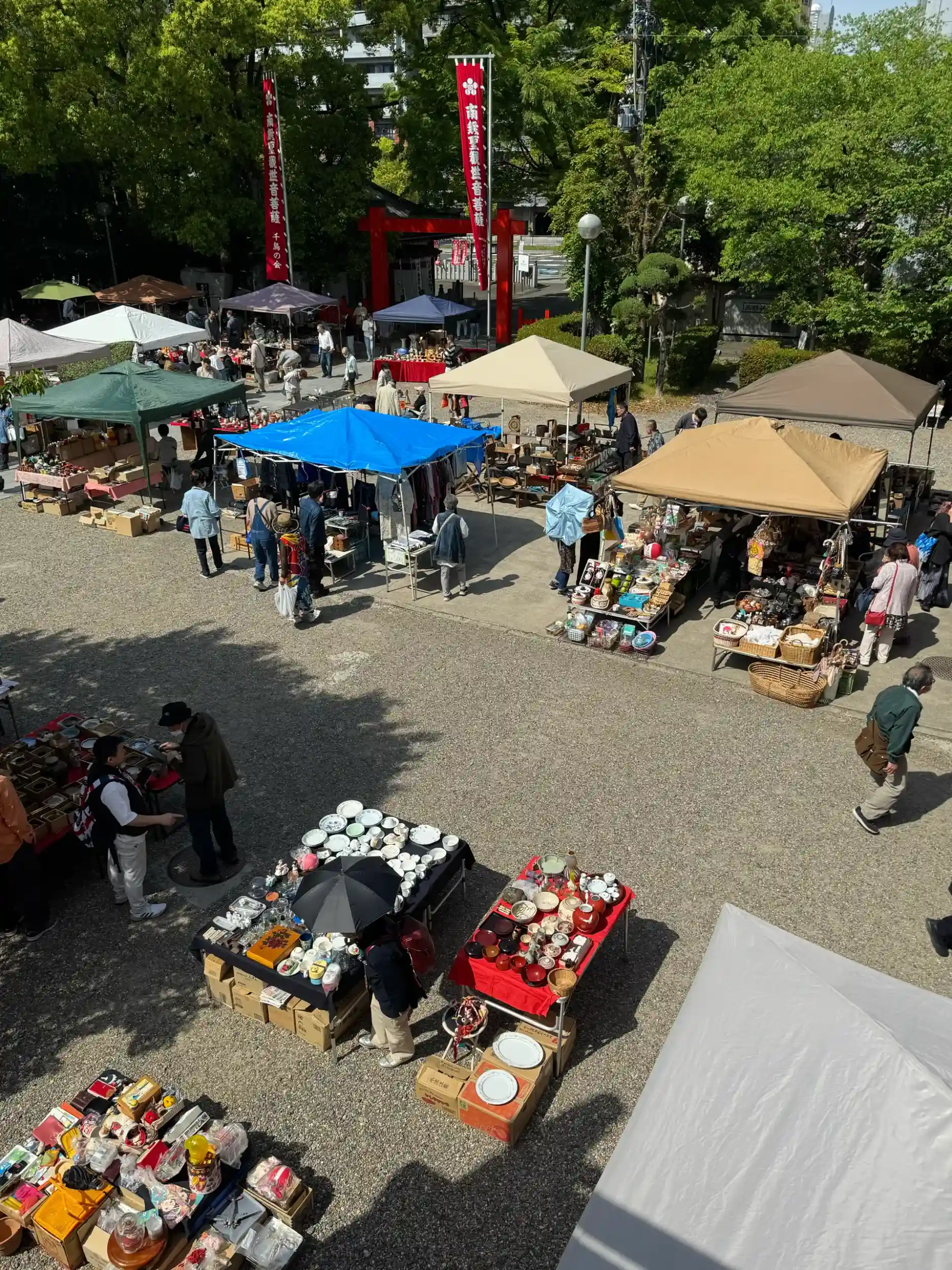 骨董市やってました。近くの青柳総本家は普段みかけない饅頭やういろう売ってました。