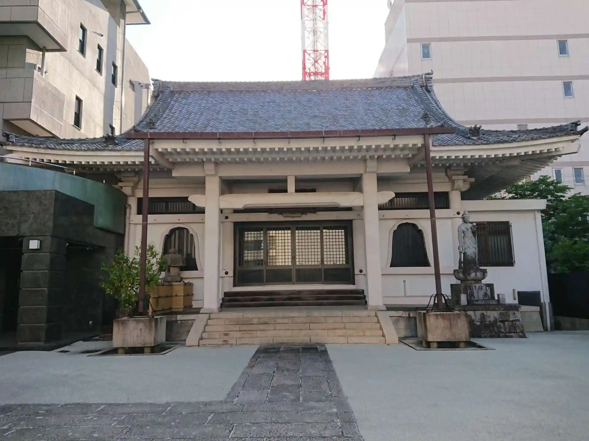 広い道路沿いにあり本堂を見ることができます。道路からも見えますが、本堂の前に行くと大きさがわかります。