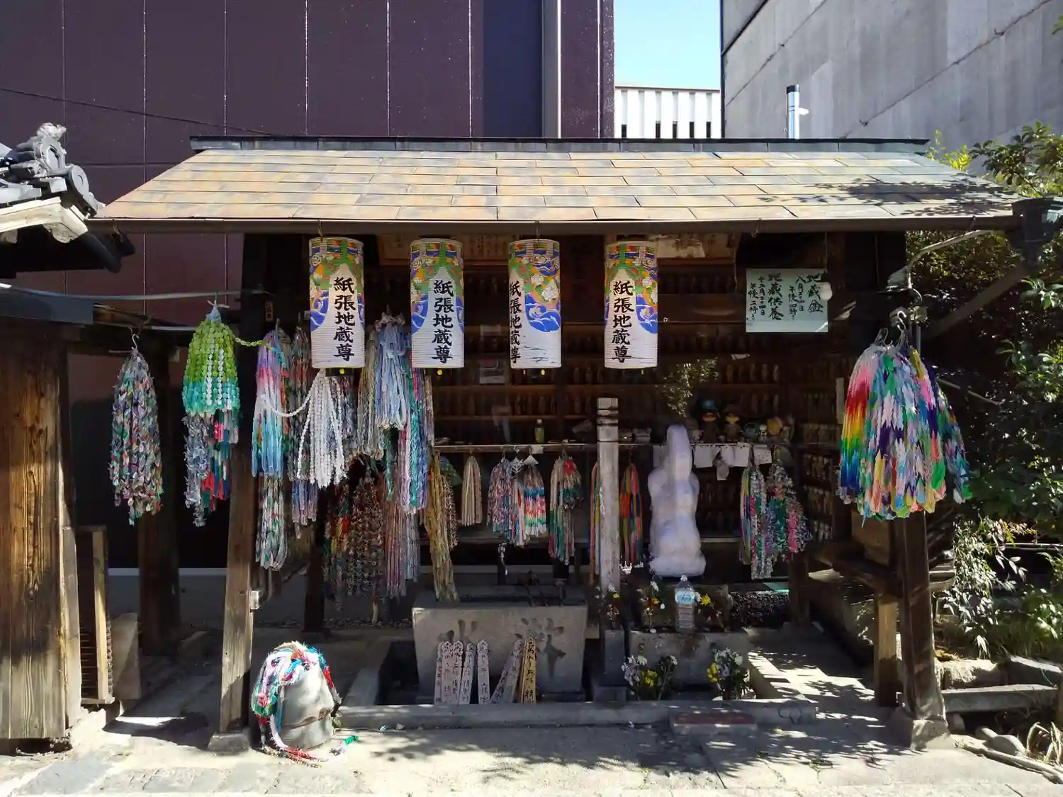 大須に行きました。コインパーキングの隣にあった「紙張り地蔵さん」。