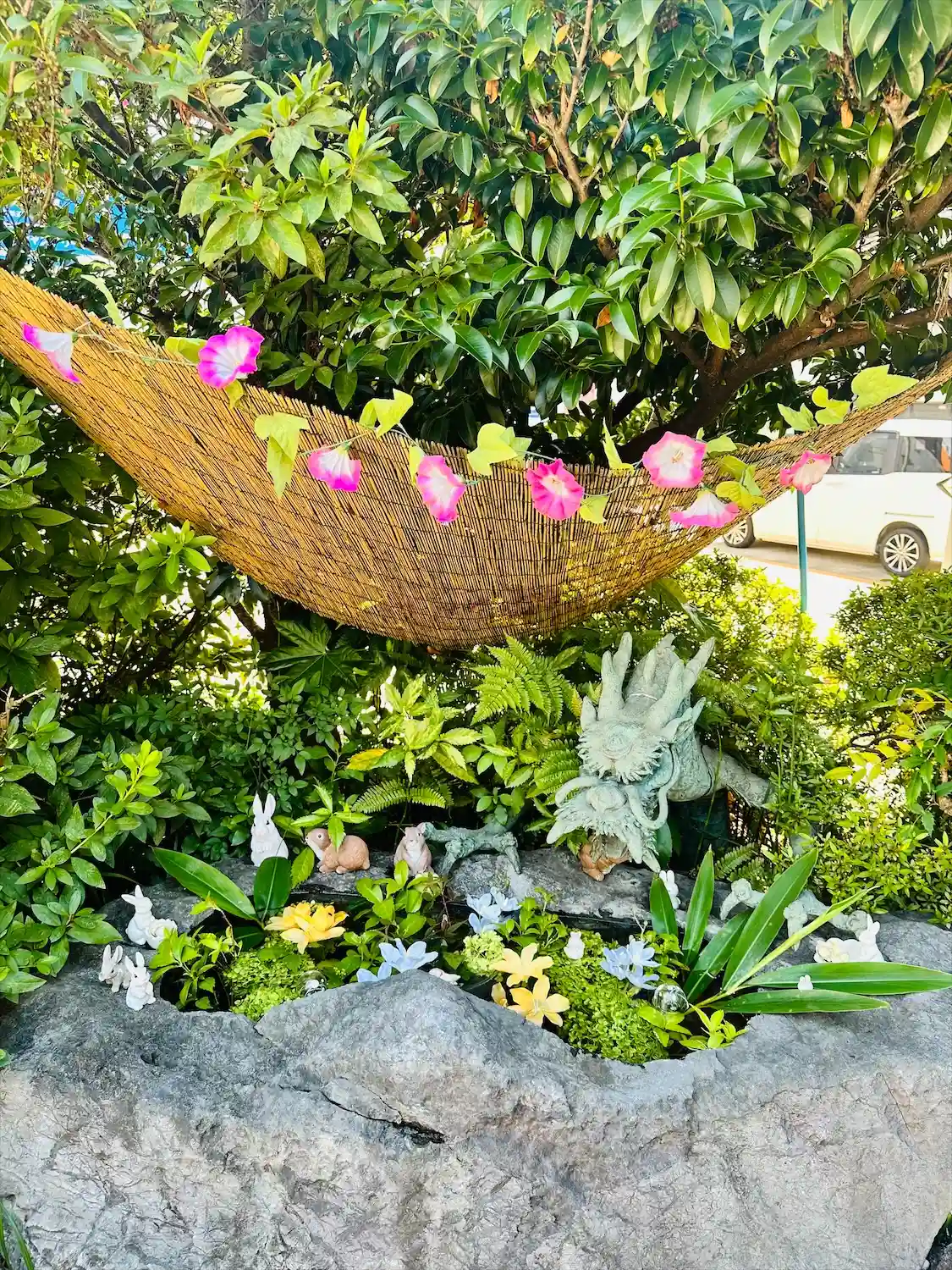 幸運を呼ぶと言われる兎の像がいっぱい