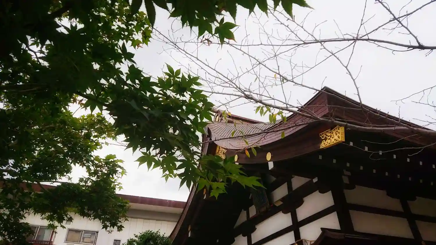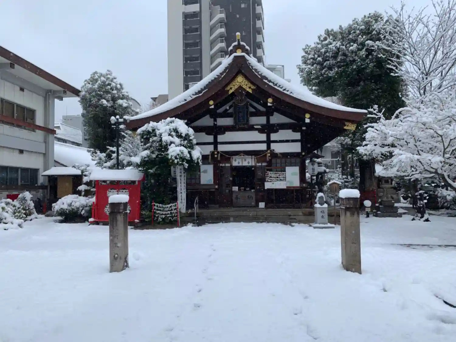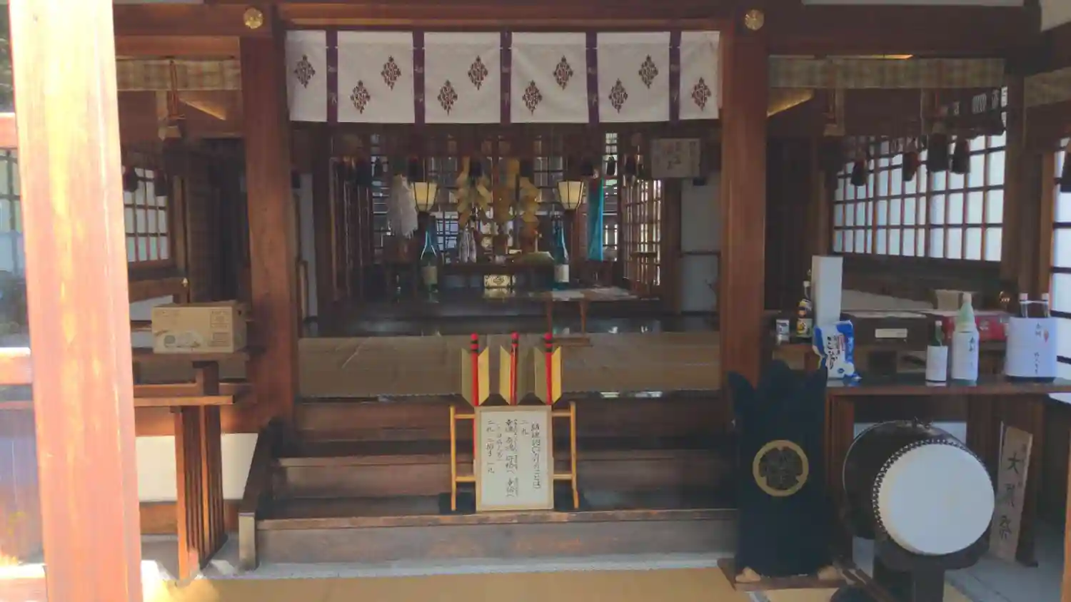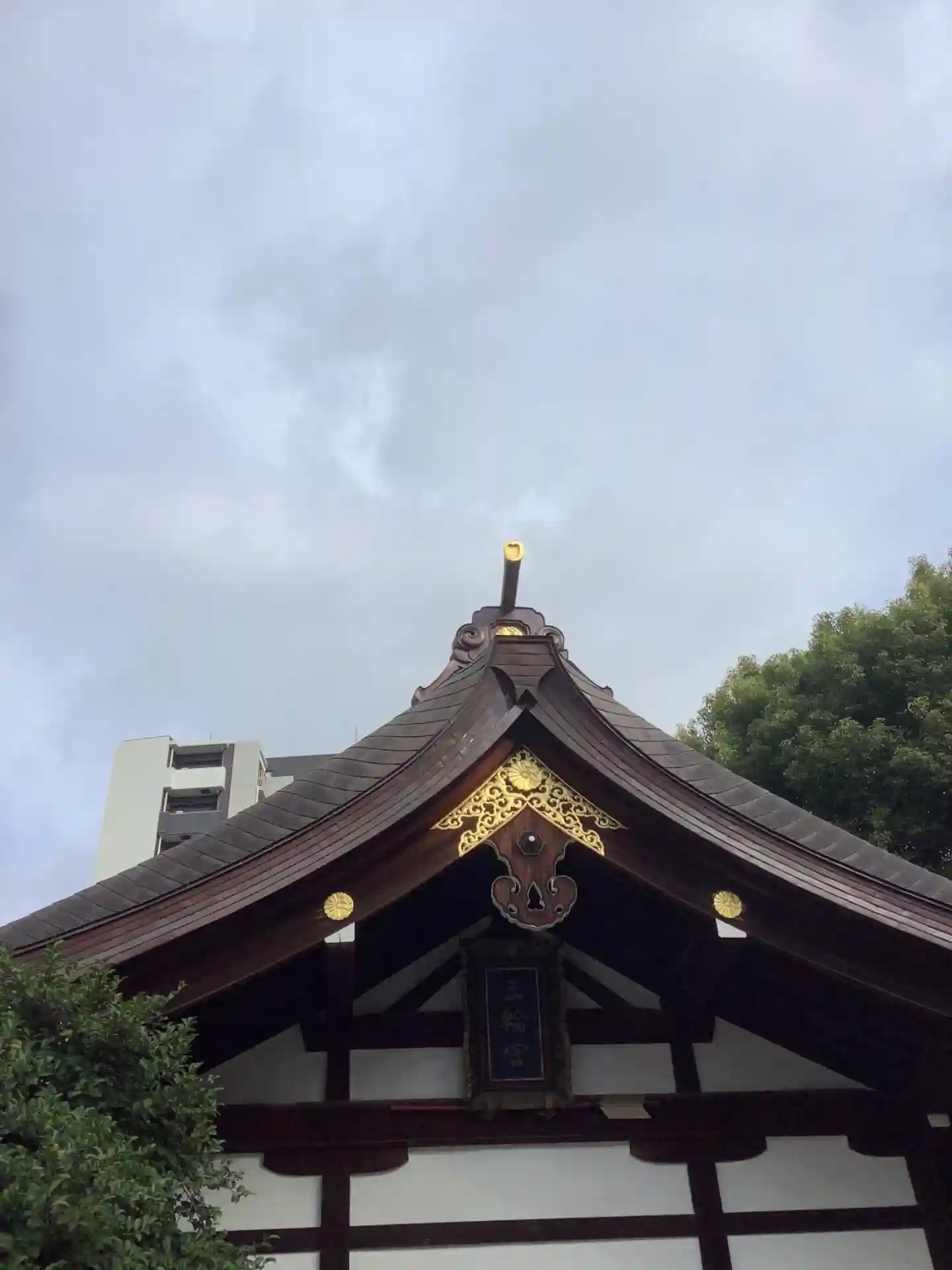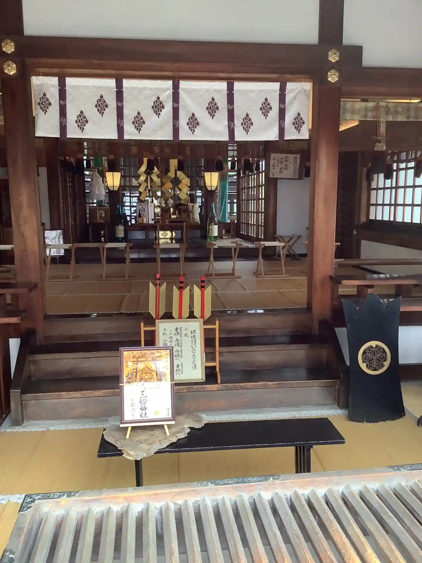 参拝の方が写り込まないよう慌てて撮ったら斜めになりました。