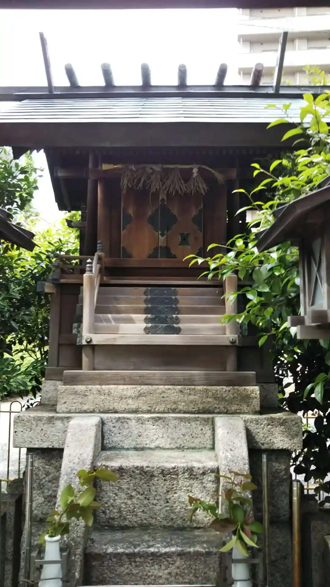 大須神社の本祠です。多くの小さな社は流造が多いですが、ここの社は前側の屋根と後ろ側の屋根が反りがなく長さも同じようなので神明造のような気がします。