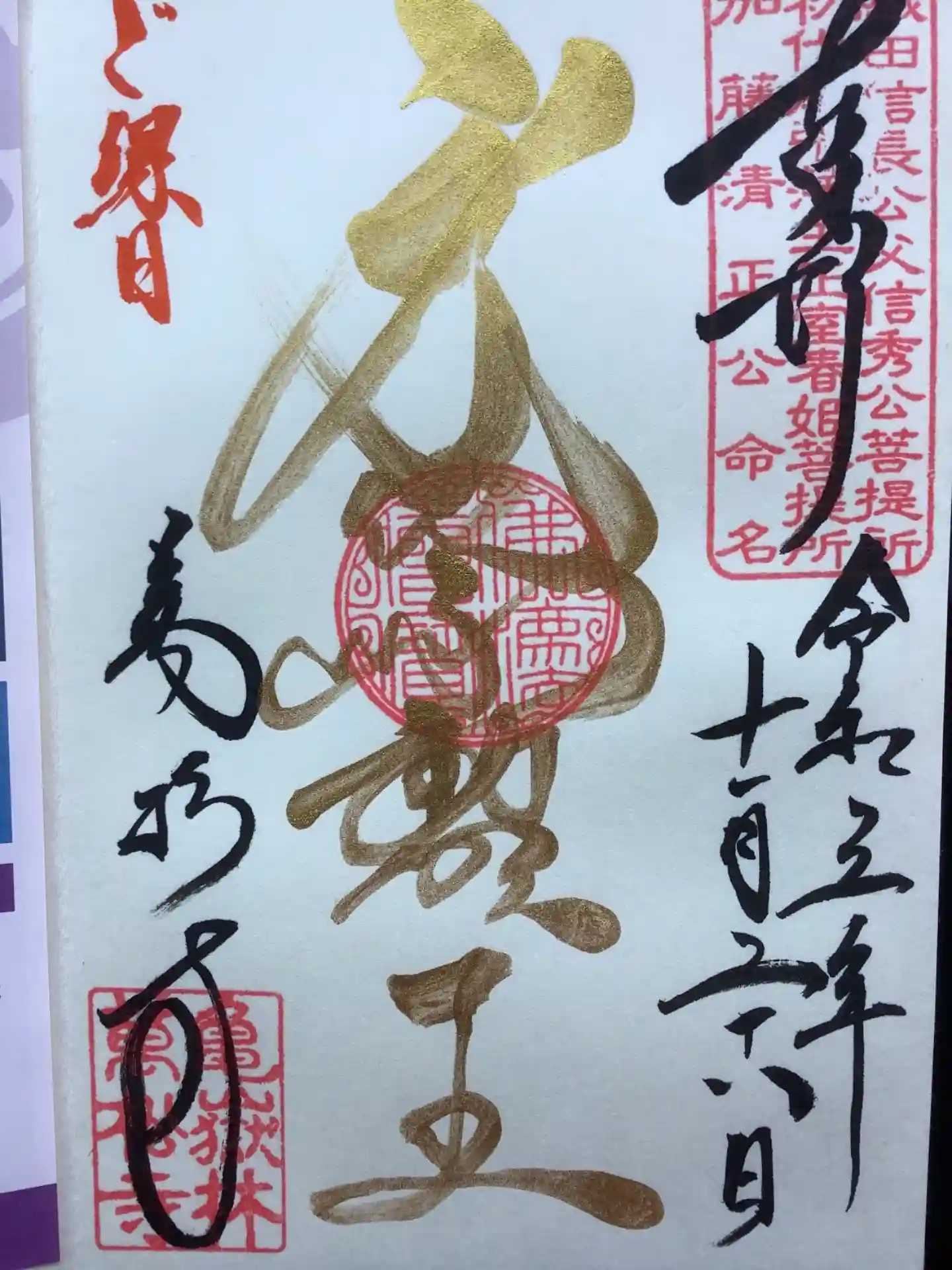 ご縁日に金墨の朱印です