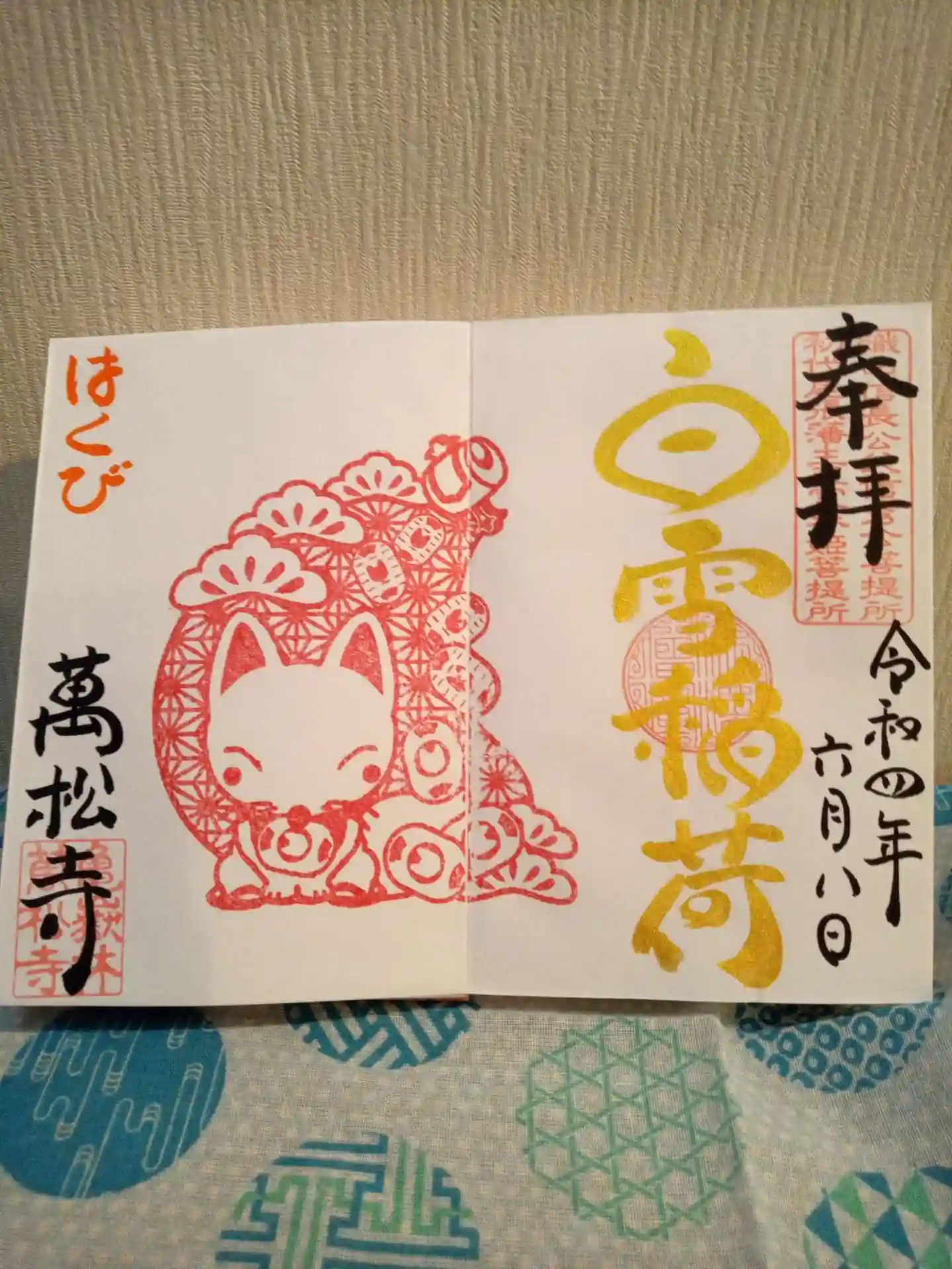 通常御朱印には左上に七夕の印を押していただけました。書いて頂く仏様のお名前は自分で選びます。