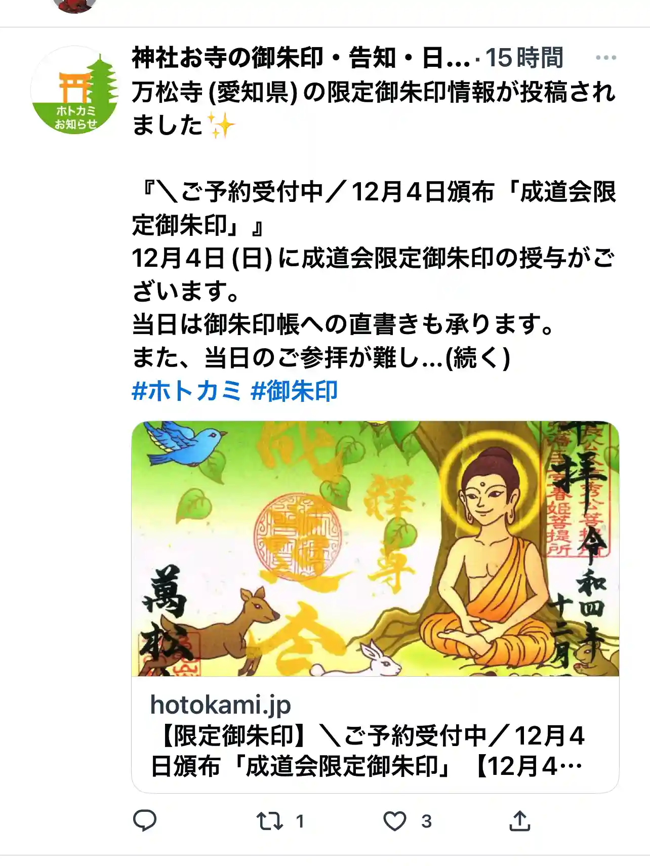 ホトカミを見てお参りされた際は、もし話す機会があれば住職さんに、「ホトカミ見てお参りしました!」とお伝えください。