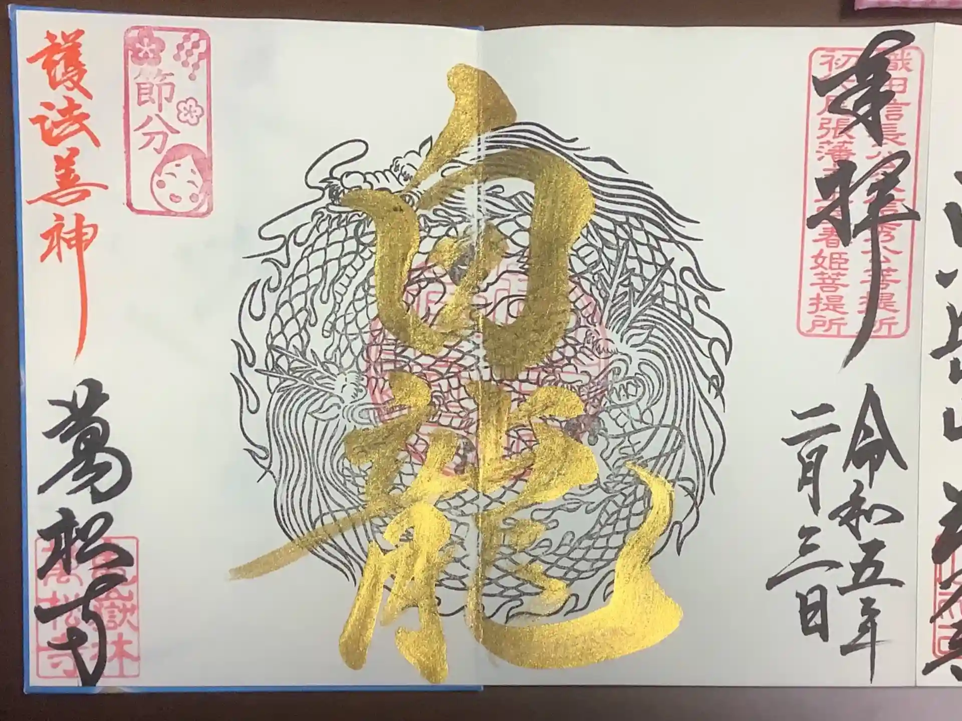 御朱印は、節分会(直書きもあると思ってた)と白龍さんの見開きです。
