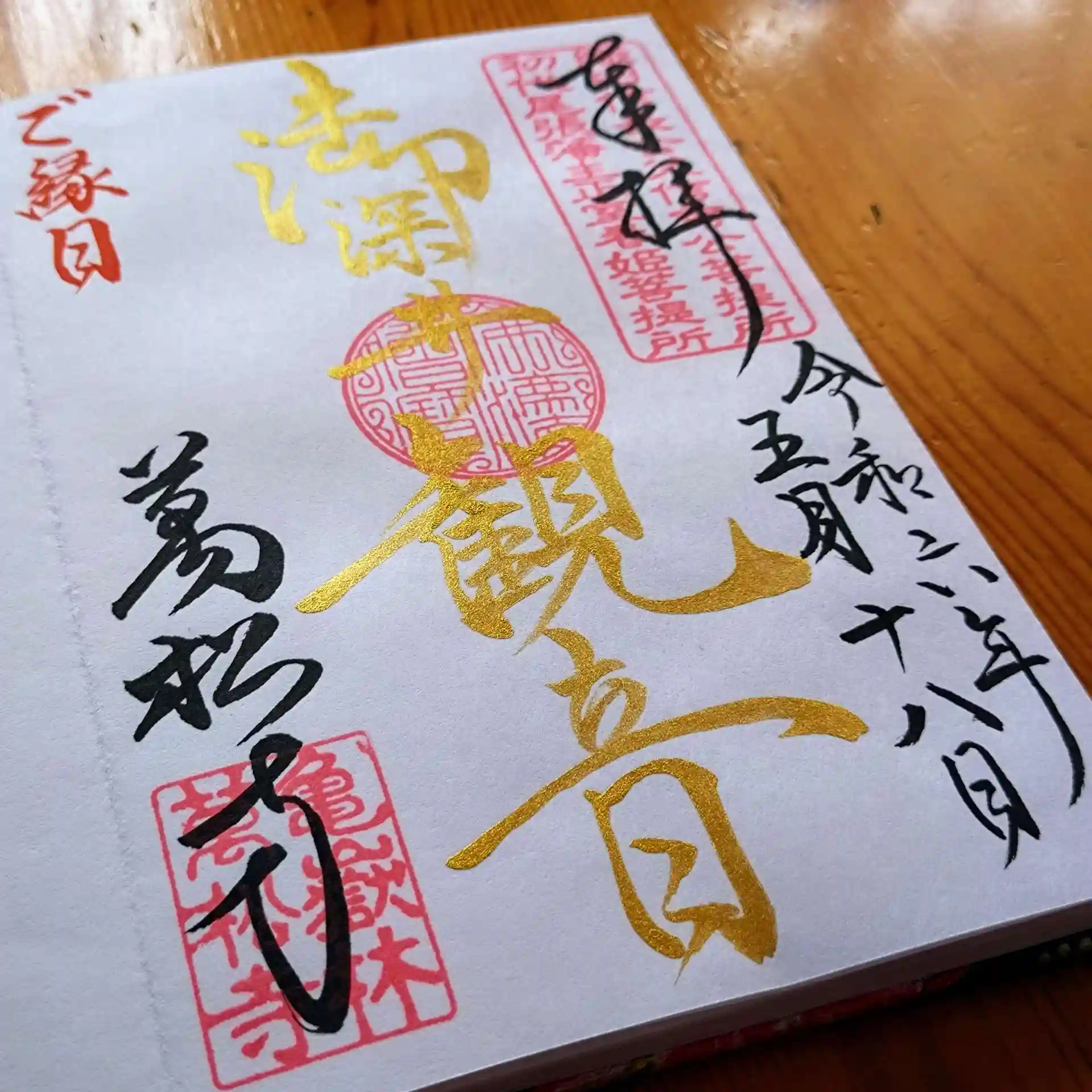 この日はちょうど18日でしたので縁日限定金墨御朱印(御深井観音)と、5月限定御朱印(月詣御朱印・身体健全(書置き))をいただきました。