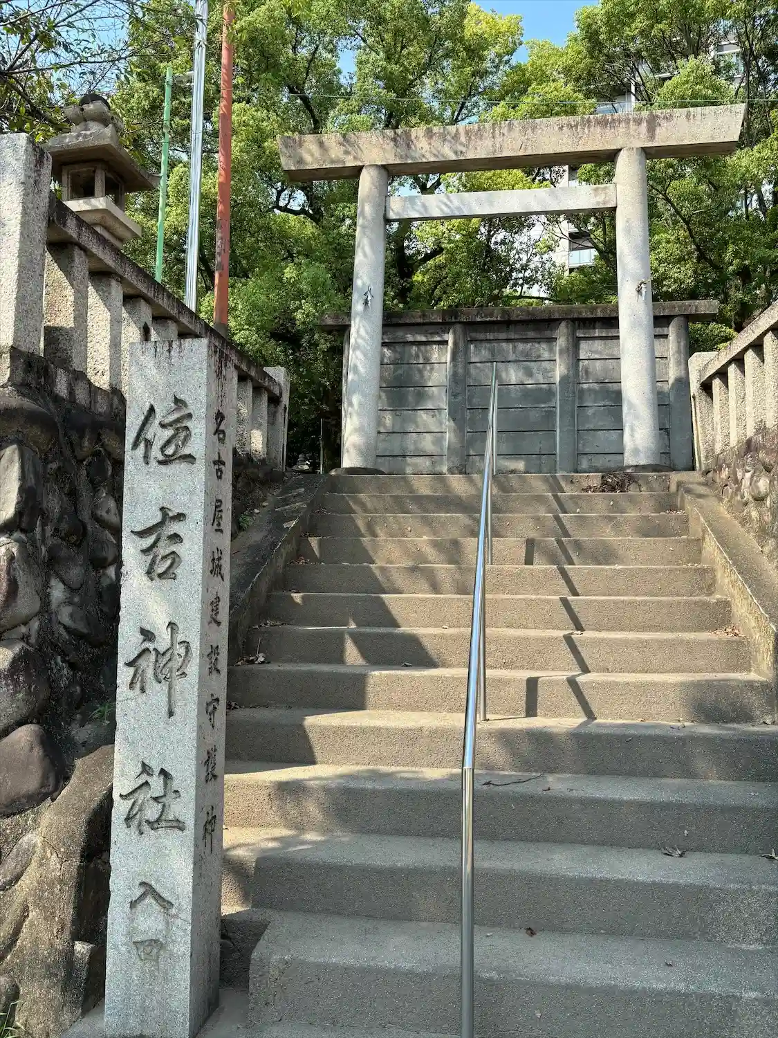 住吉神社。名古屋城の建設守護神らしい。ここも神職が不在。いつ来たらいるのか?手がかりも見つからない。境内には、駐車している車が数社あり、貸している感じ。