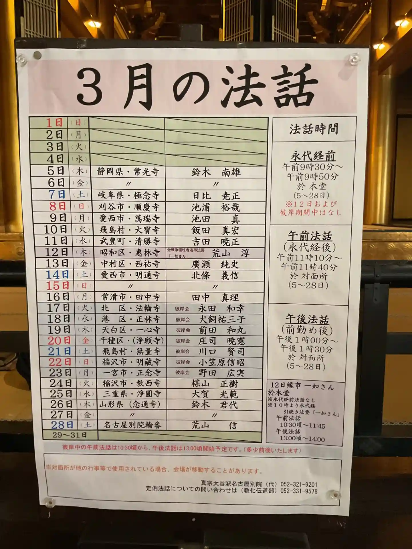 ちなみに東別院さんの正式名称は「真宗大谷派名古屋別院」です。