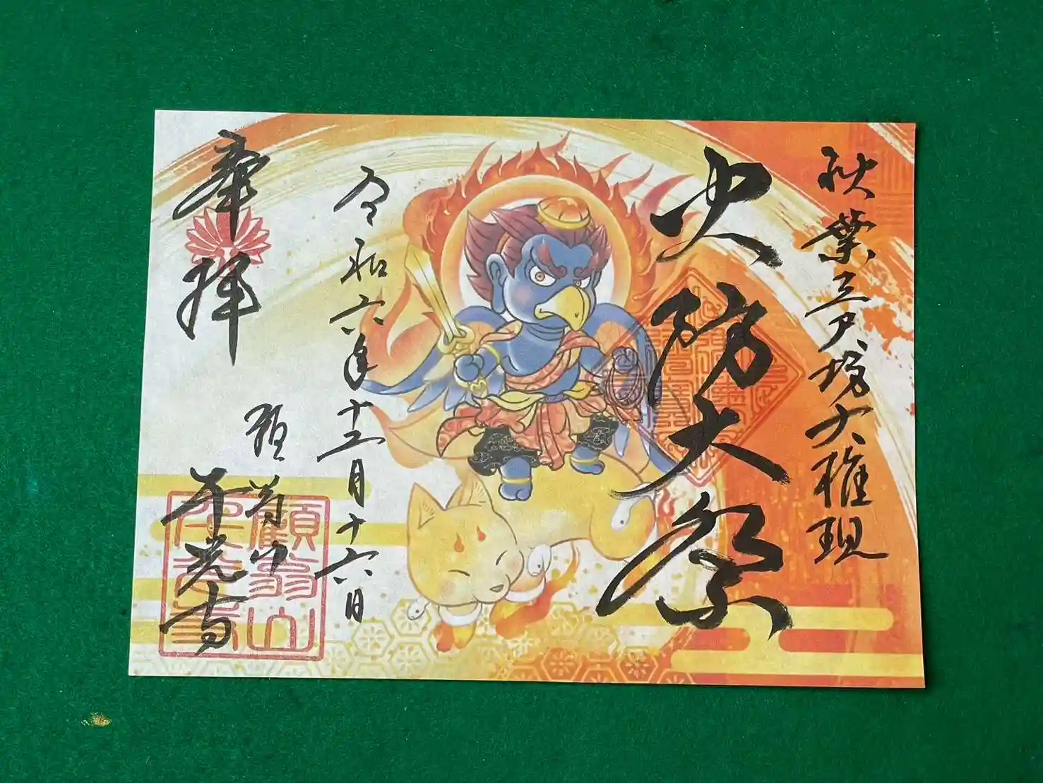 この御朱印は、火防大祭バージョンの三尺坊様アート御朱印です。