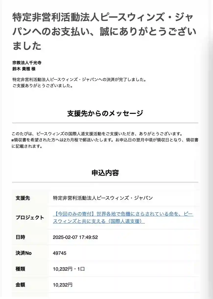 曹洞宗義援金への振込明細