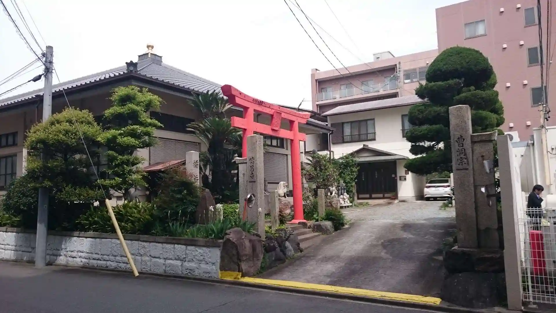 国道19号線(伏見通)沿いにあり、宝形造りの本堂屋根と真っ赤な稲荷鳥居が目につきます。