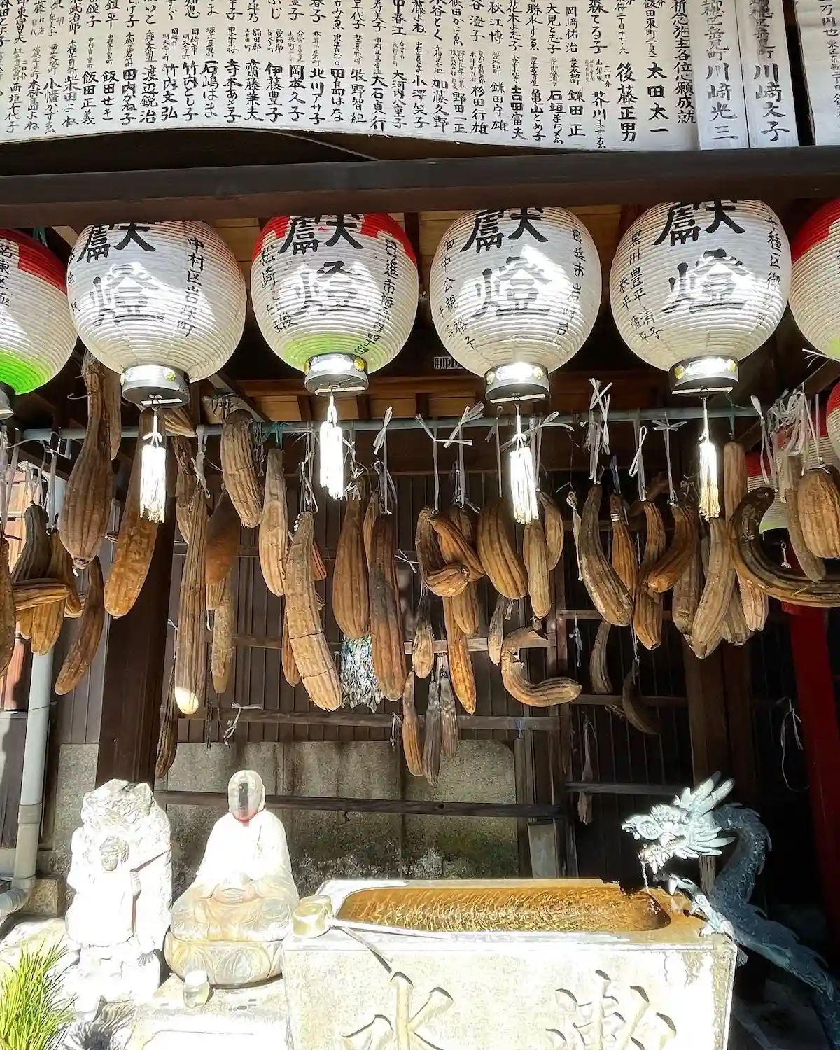 手水舎ですが、既に数多のヘチマが下がっています。