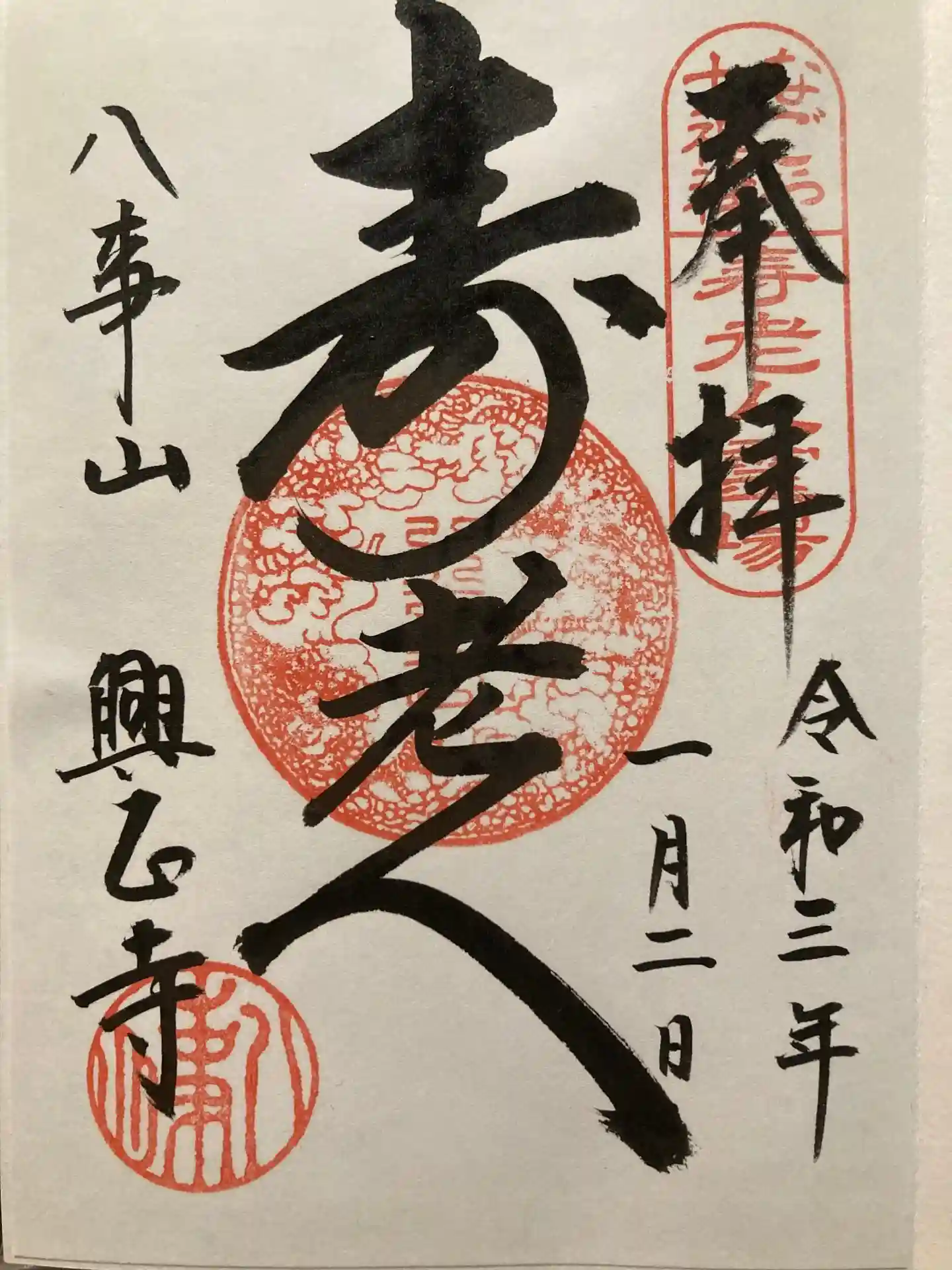 御朱印は六種類あり、三種類は既にいただいているので迷いましたが、一度いただいたことのある寿老人の御朱印をいただきました。幸福長寿・家庭円満の願いを込めて。