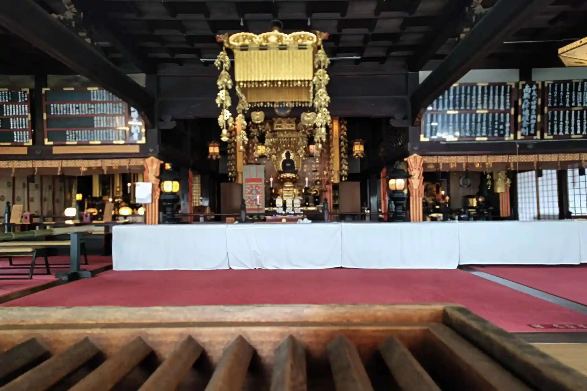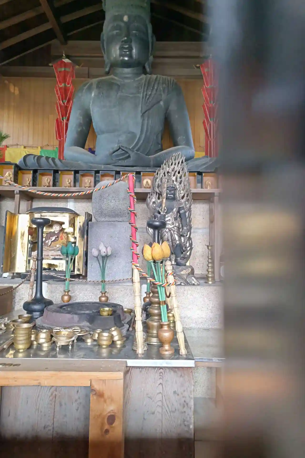 格子の隙間から撮った大日如来像です。光友公寄進で、高さ3.3mあります。興正寺の総本尊です。