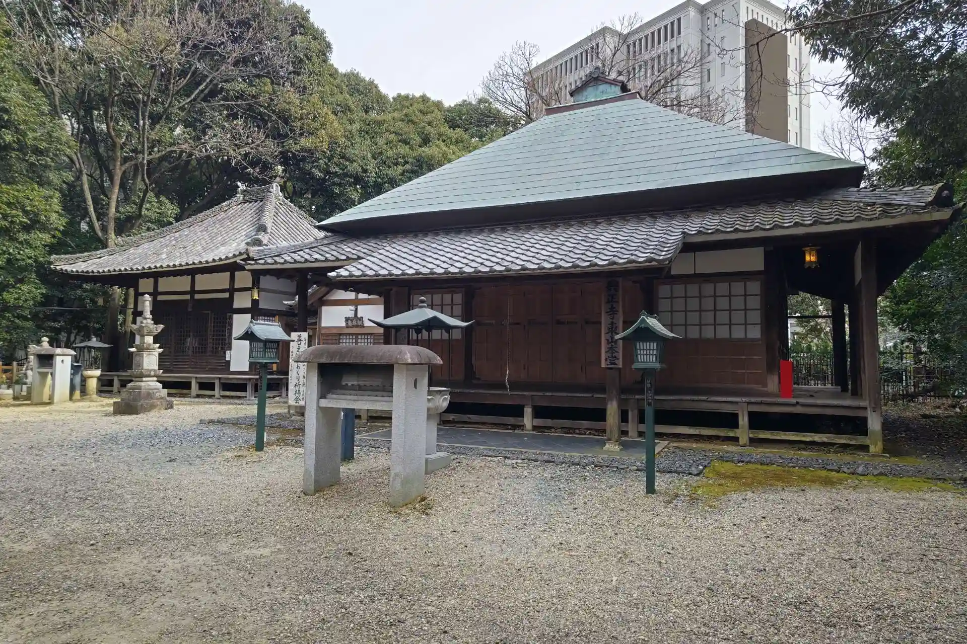 奥之院まで来ました。ほとんど誰も来ません。広い八事山の端っこだからね。でもこちらが興正寺発祥の地です。創建時に建立された最も古い堂宇の一つです。手前が東山本堂で、奥が不動護摩堂です。東山本堂には歴代藩主と歴代先師の位牌が祀られています。
