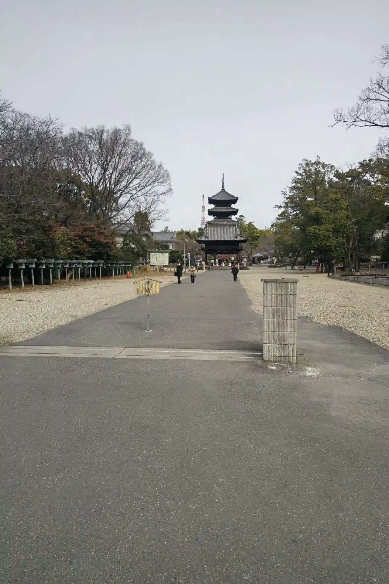 寺号標です。すでに五重塔が見えています。