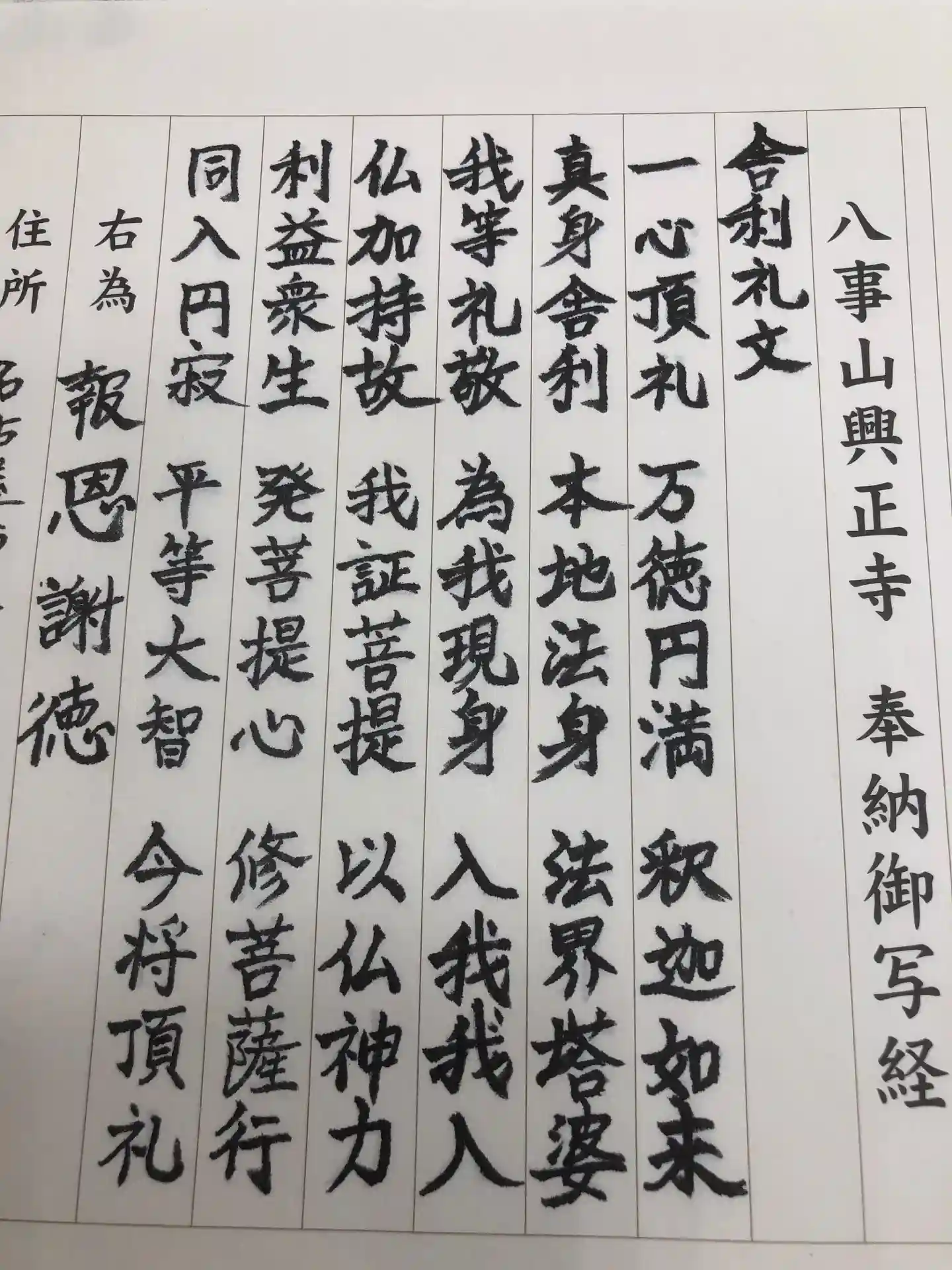 舎利礼文を初めて写経しました