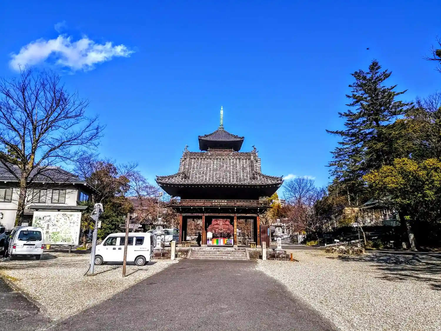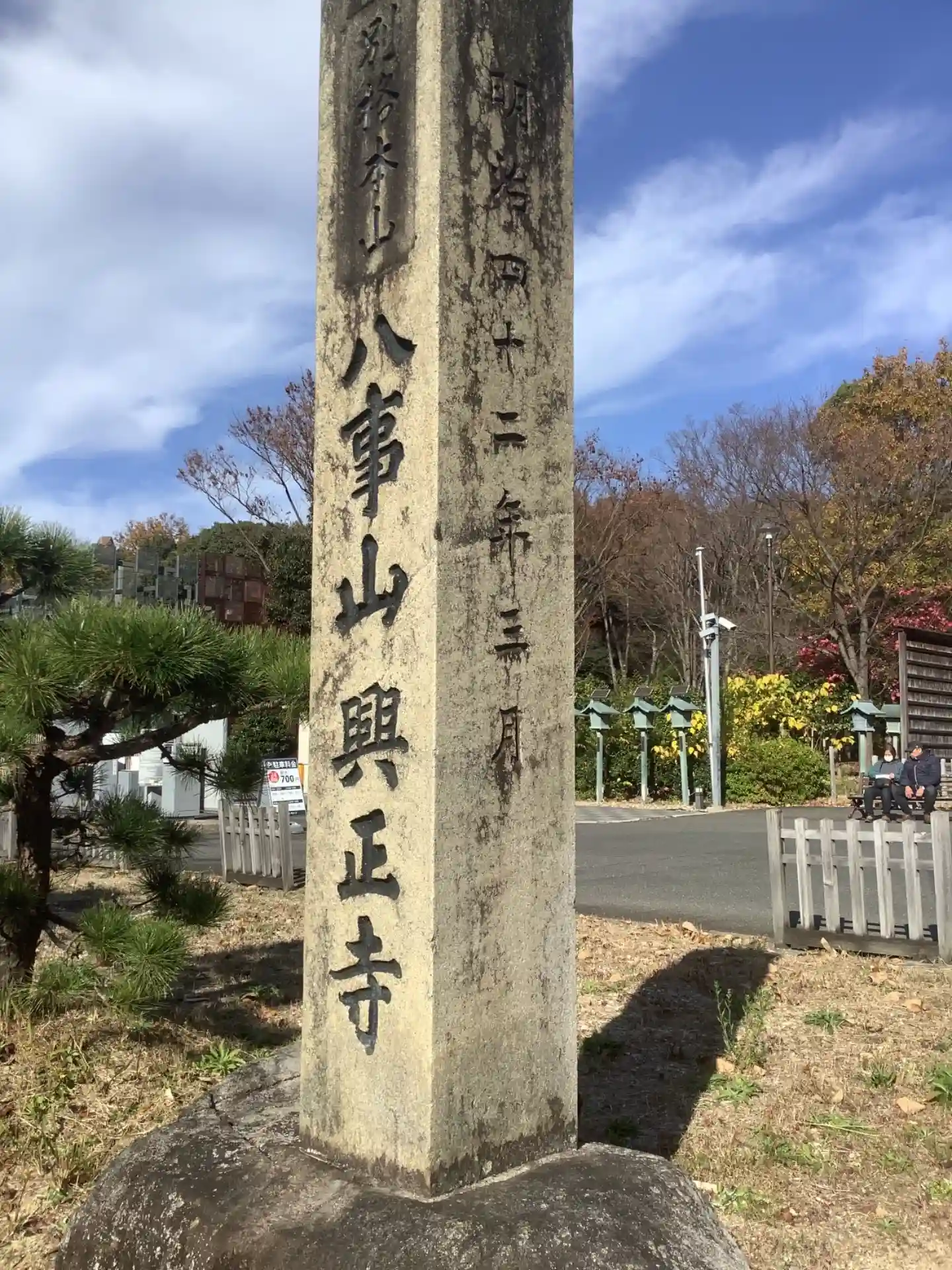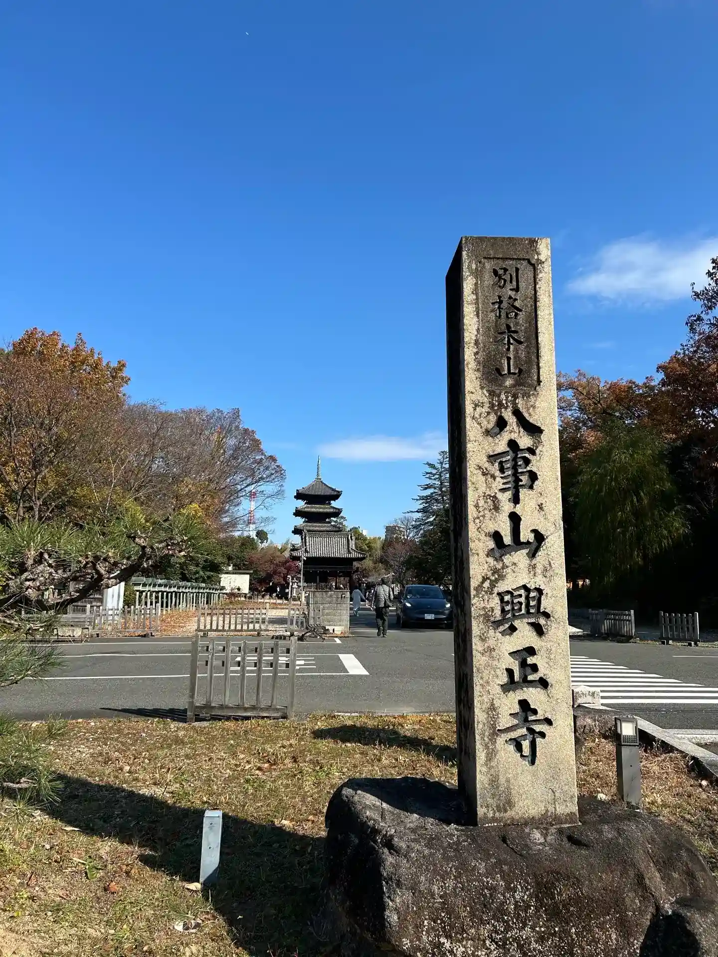 寺号標です。すでに五重塔が見えています。