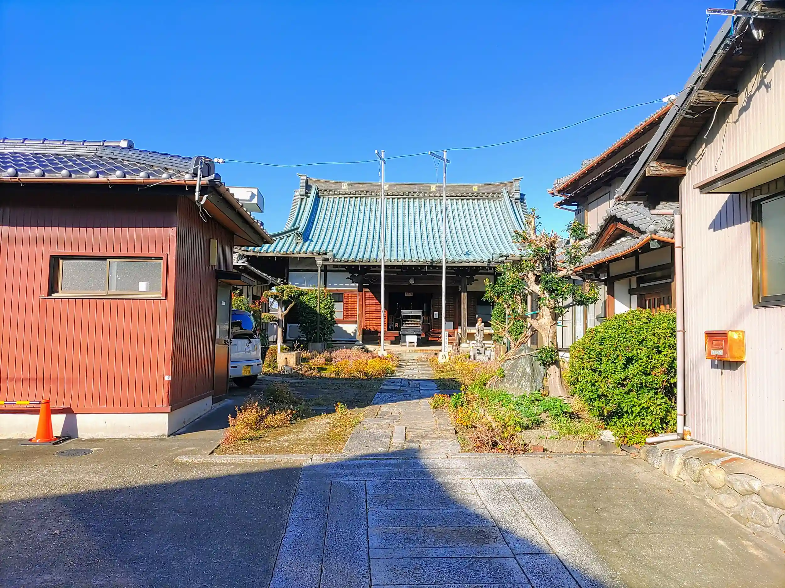 本堂が開いていたので、中をうかがうと突然ネコが飛び出して来てびっくり!もっとじっくりと本堂内を観察すればよかった。