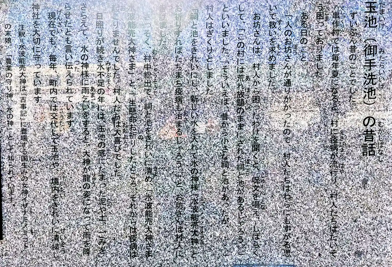 境内の「御手洗池」をさらえて雨乞いをすれば降雨ありと伝えられている。