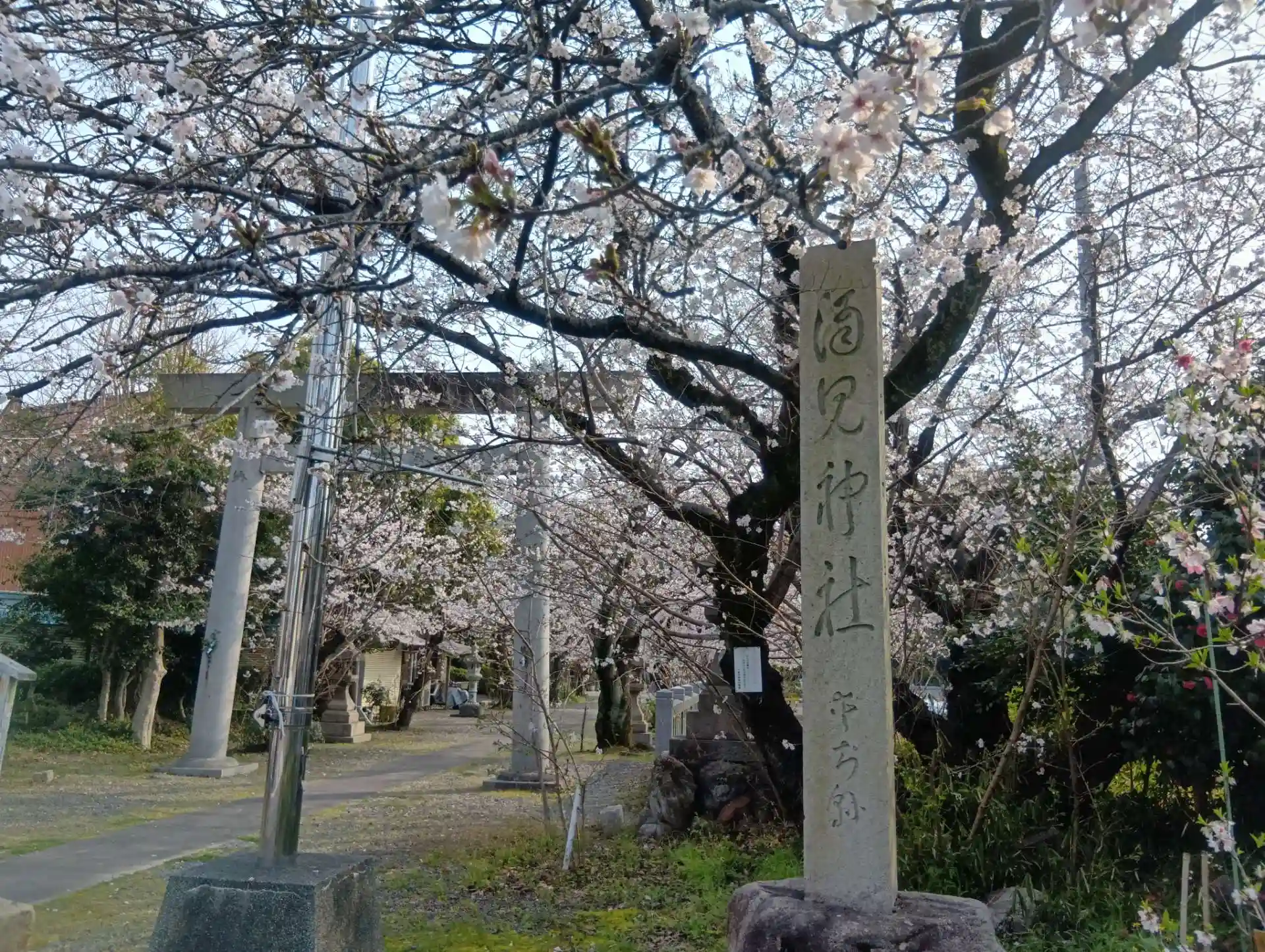 愛知県一宮市今伊勢町に鎮座する「酒見神社」を初参拝させていただきました。天照大御神、酒弥豆男神、酒弥豆女神を主祭神とする神社です。桜花まつり開催中、期間限定の「桜の御朱印」(書置き500円)がありました。桜色の桜の絵柄が入った和紙に、やわらかな色合いの文字で書かれています。拝殿の左側に御朱印の入った箱があり、代金を賽銭箱におさめます。境内の北側に参拝者用駐車場があります。出入口が狭く、分かりづらいです。