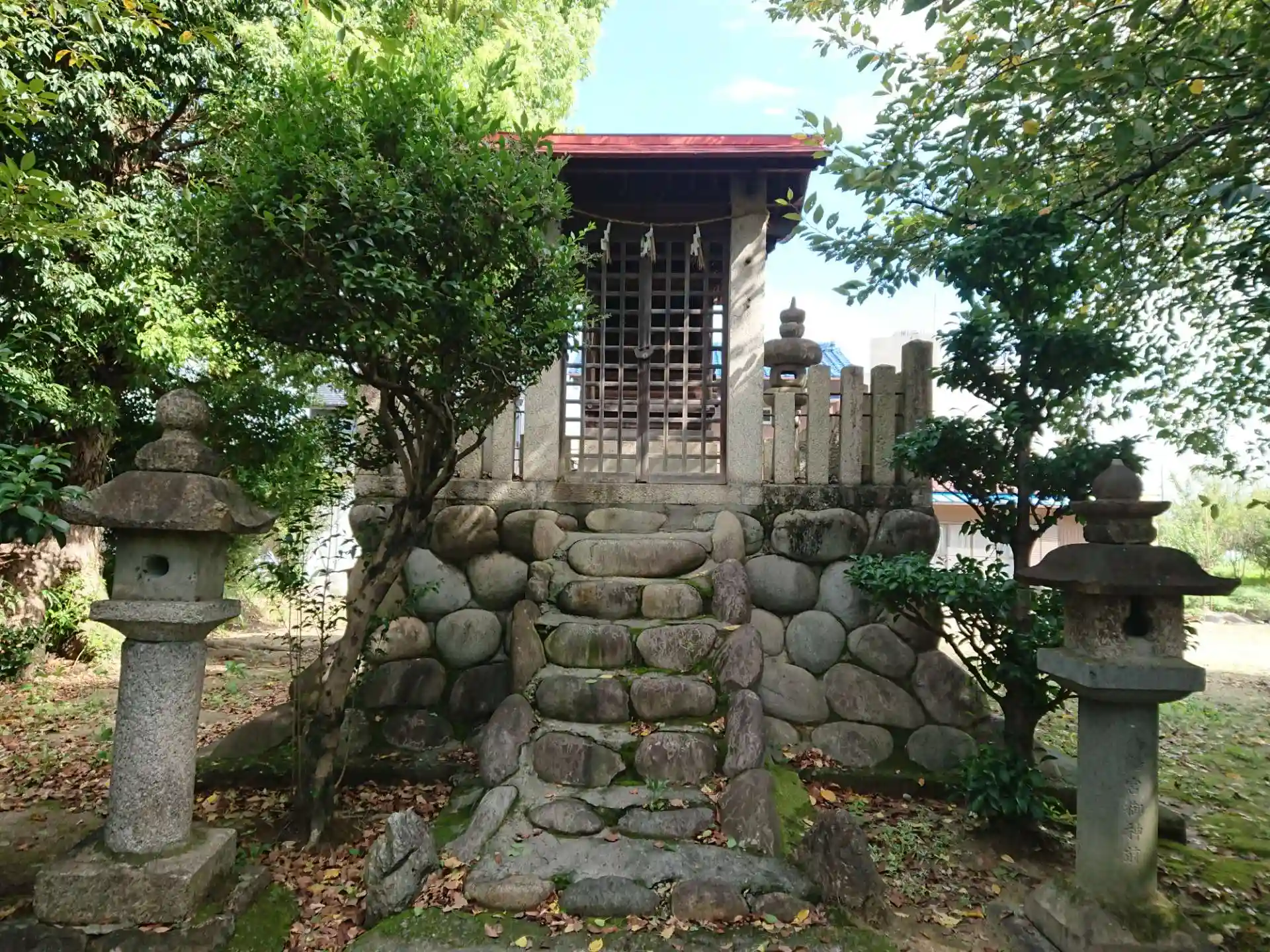 住宅地の中にあります。境内では大勢の高齢者が、ゲートボールをして楽しんでいました。