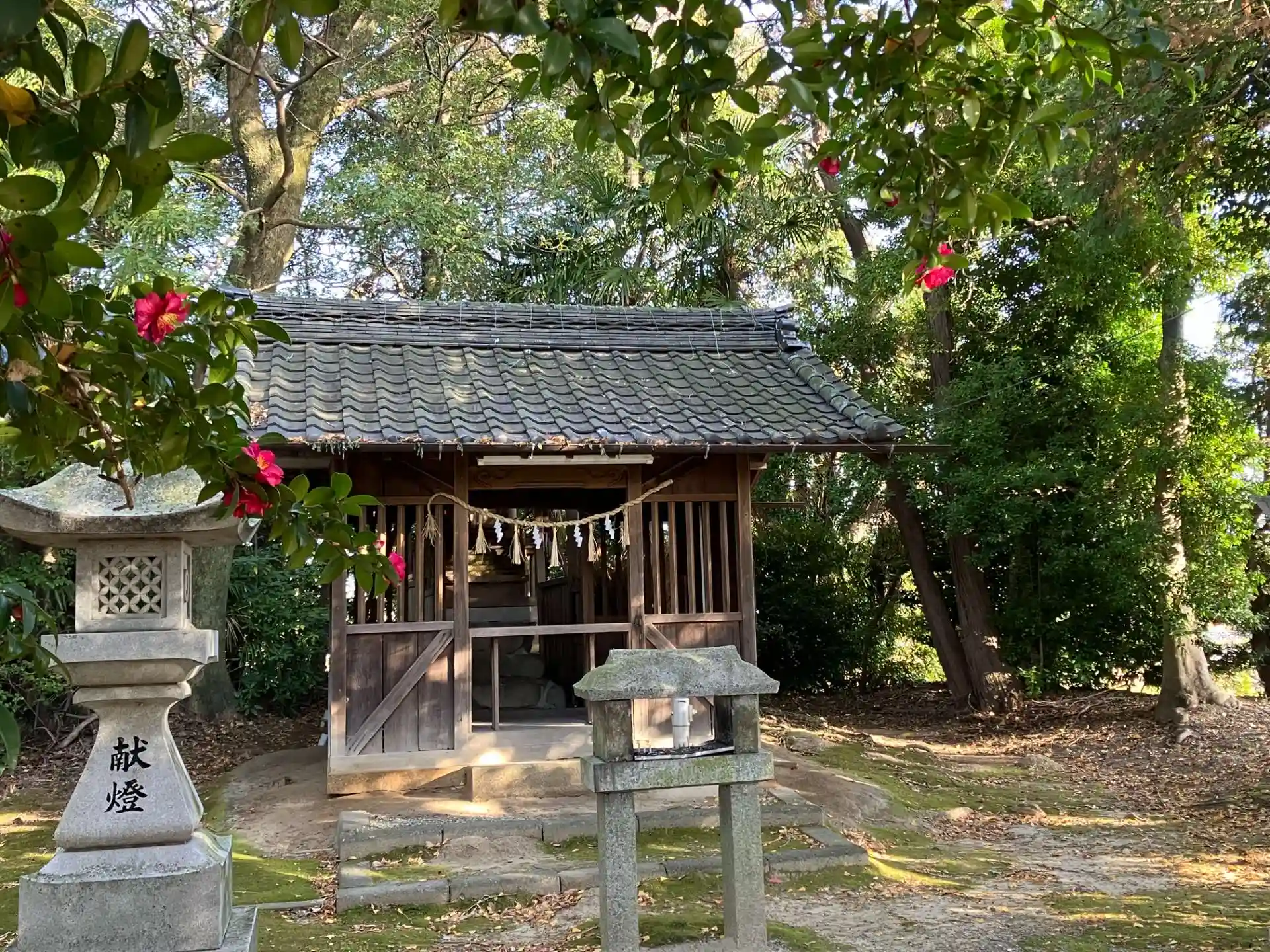 内荒神社(ナイコウジンジャ)に参拝させてもらいました。式内社の一社です。 県道128号線(交通量は多い)沿いに在り、狭い駐車スペースの北側に「内荒神社」、西側に「神明社」が鎮座して居ます。。 鬱蒼とした社叢に囲まれた境内や参道に「紅の椿の花」が咲いて心がほっこりしました。神明社もお詣りできました。
