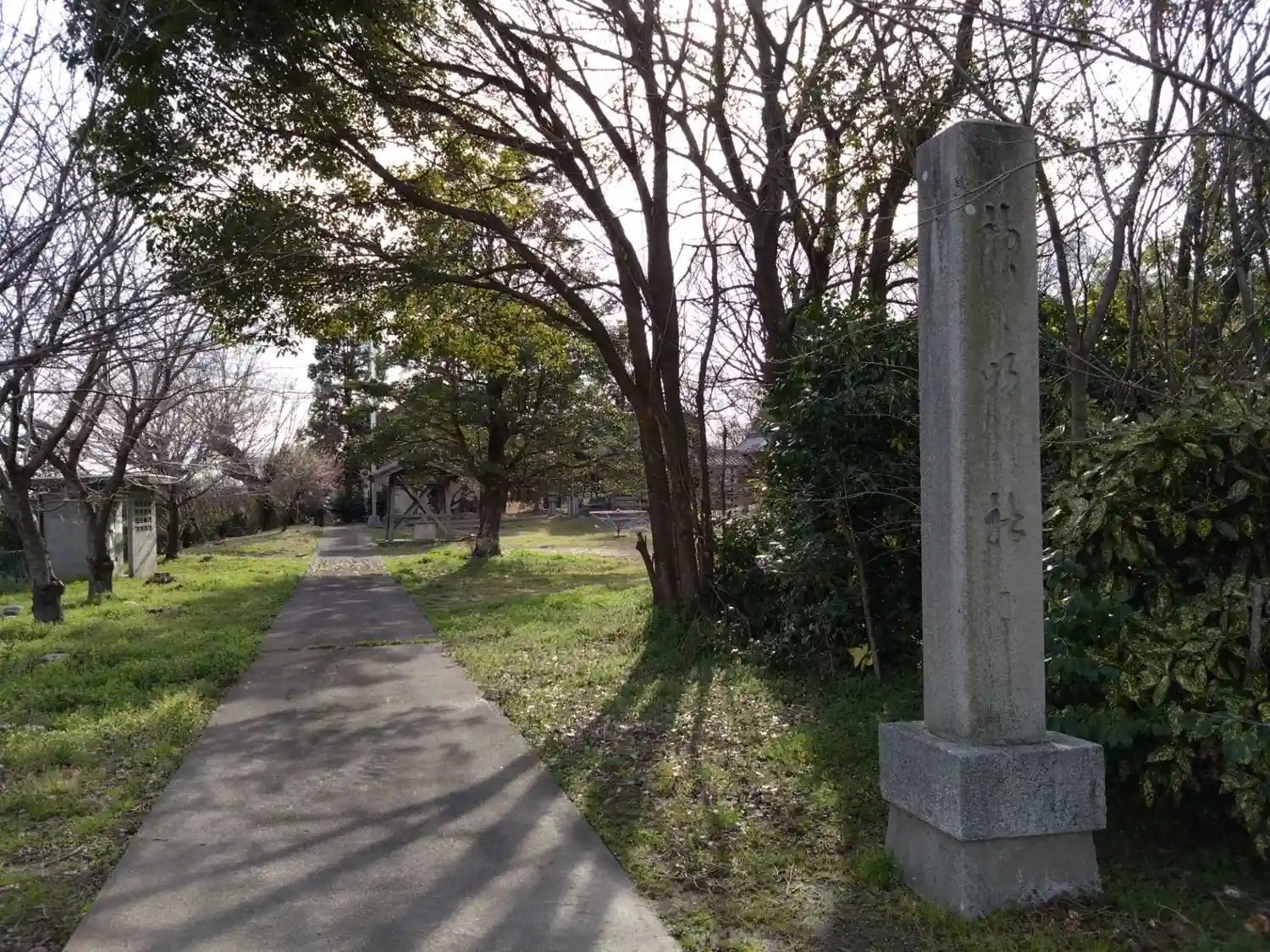 日光川のすぐ近くにある神社で、公園遊具も並んでいます。細い道なのでよく確認してから入らないとたどり…