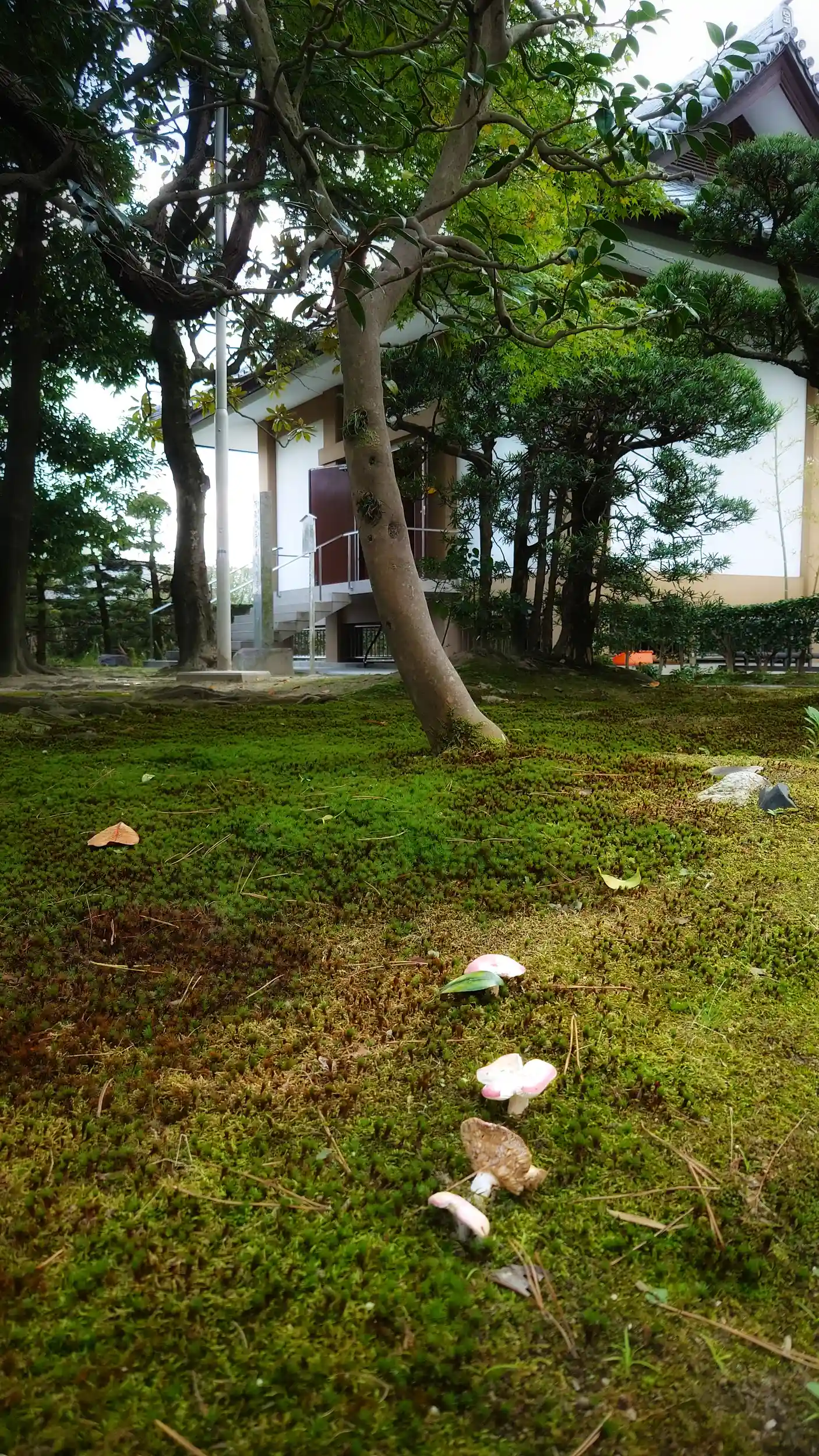 苔とキノコの生える、立派な境内(*´艸`)