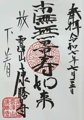 康勝寺の御朱印・御朱印帳コレクション全1枚