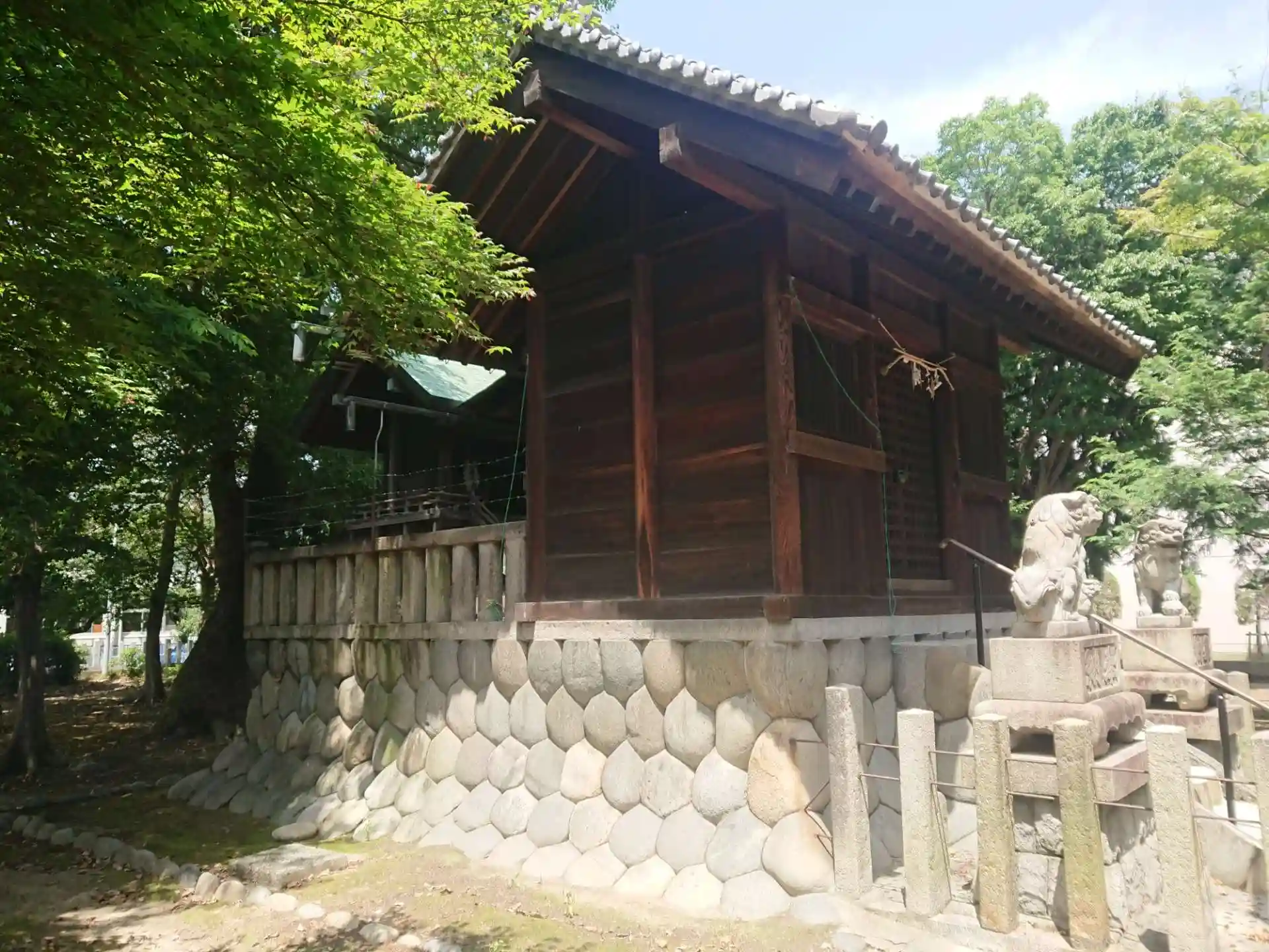 蕃塀の奥に立派な社殿があります。