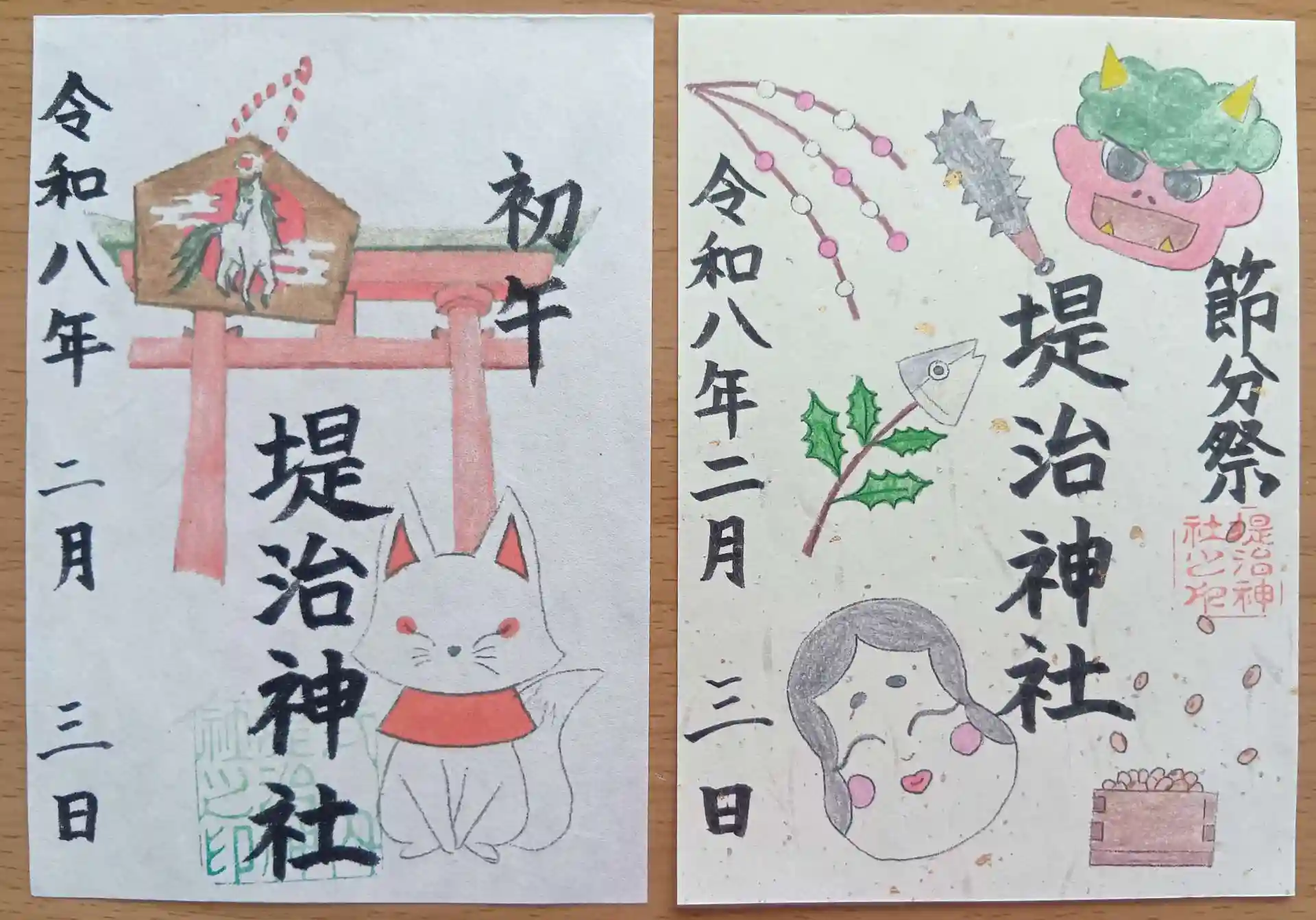 愛知県一宮市奥町にある「堤治神社」(つつみはりじんじゃ)通称「ていじじんじゃ」を参拝させていただきました。2回目の参拝です。拝殿にて大勢の素敵なお雛様がお出迎えしてくださいました。拝殿に入り間近でお雛様を拝見することができます。こんなに多くのお雛様を一度に見たのは初めてで感動しました。多種類の御朱印があり、全て書置きです。スタンプカードもあります。今回は書置きの「祭典限定御朱印・節分祭福豆付き(700円)」と「2月季節の御朱印・初午(400円)」をいただきました。境内の北東にある「招福稲荷神社」にも参拝させていただきました。かわいらしいキツネさまがいらっしゃいます。境内の石畳や池の底などにハート型の石を6個見つけました。また参拝させていただきます。境内の南側に30台分ほどの駐車場があります。