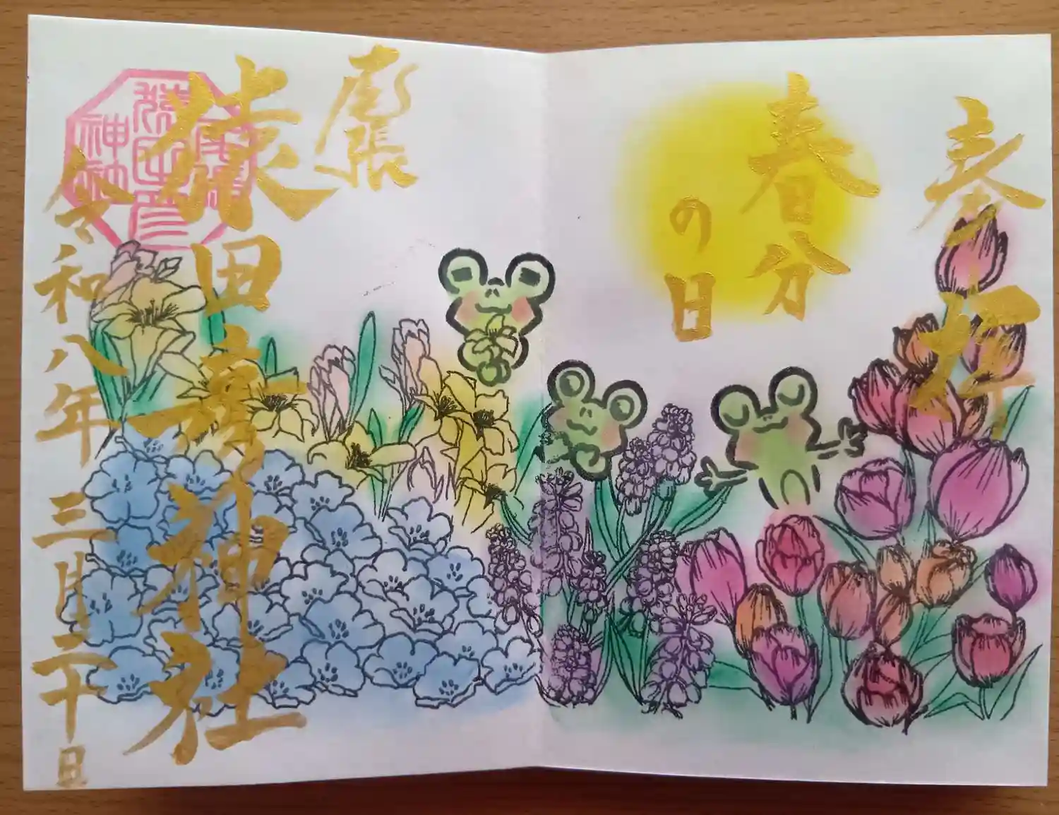 可愛い誕生日御朱印の直書きはカラフルなイラストに金文字が豪華✨
