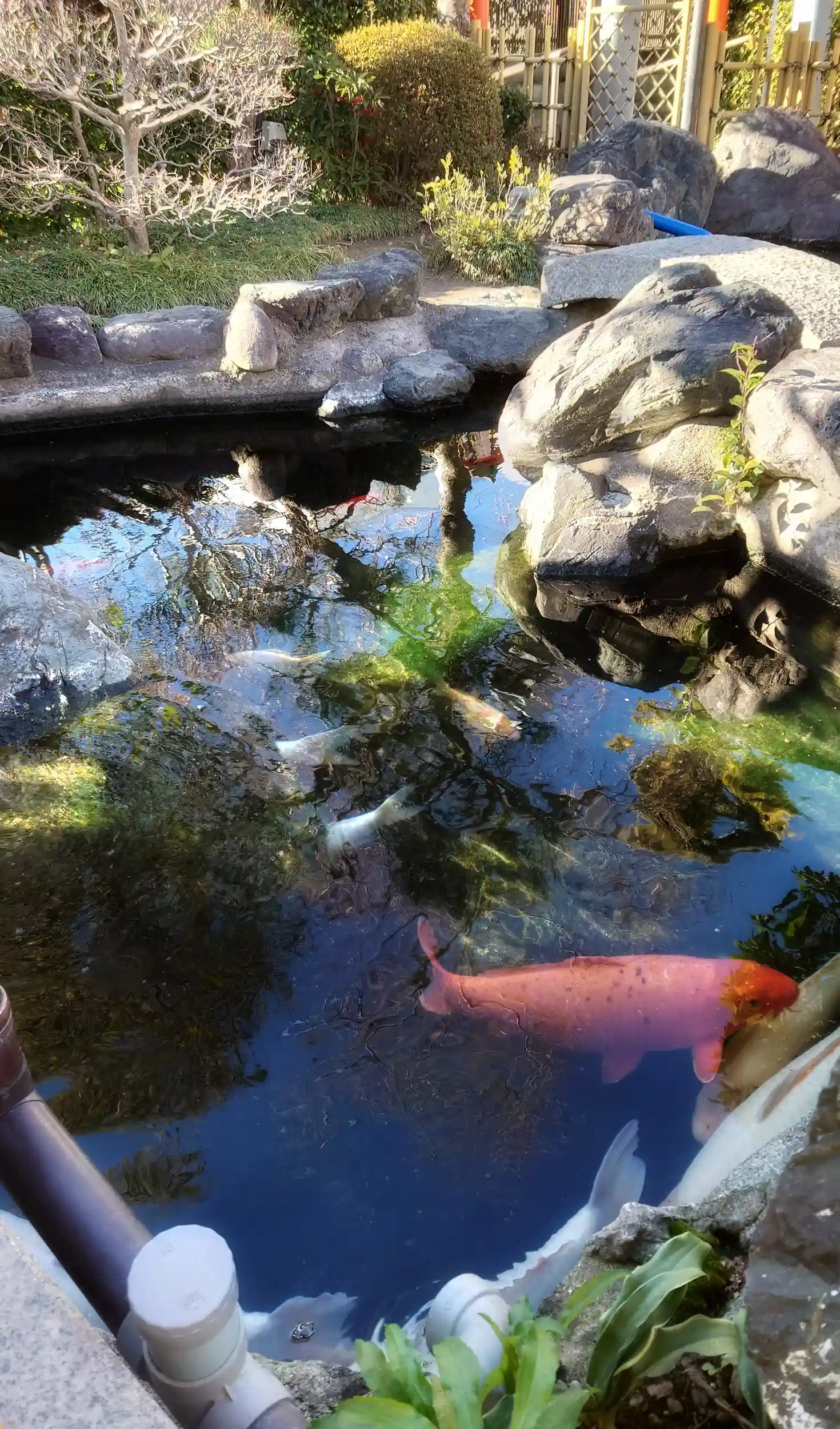 池の鯉さん…┃ω・๑)ジィー🐟🐟🐟
