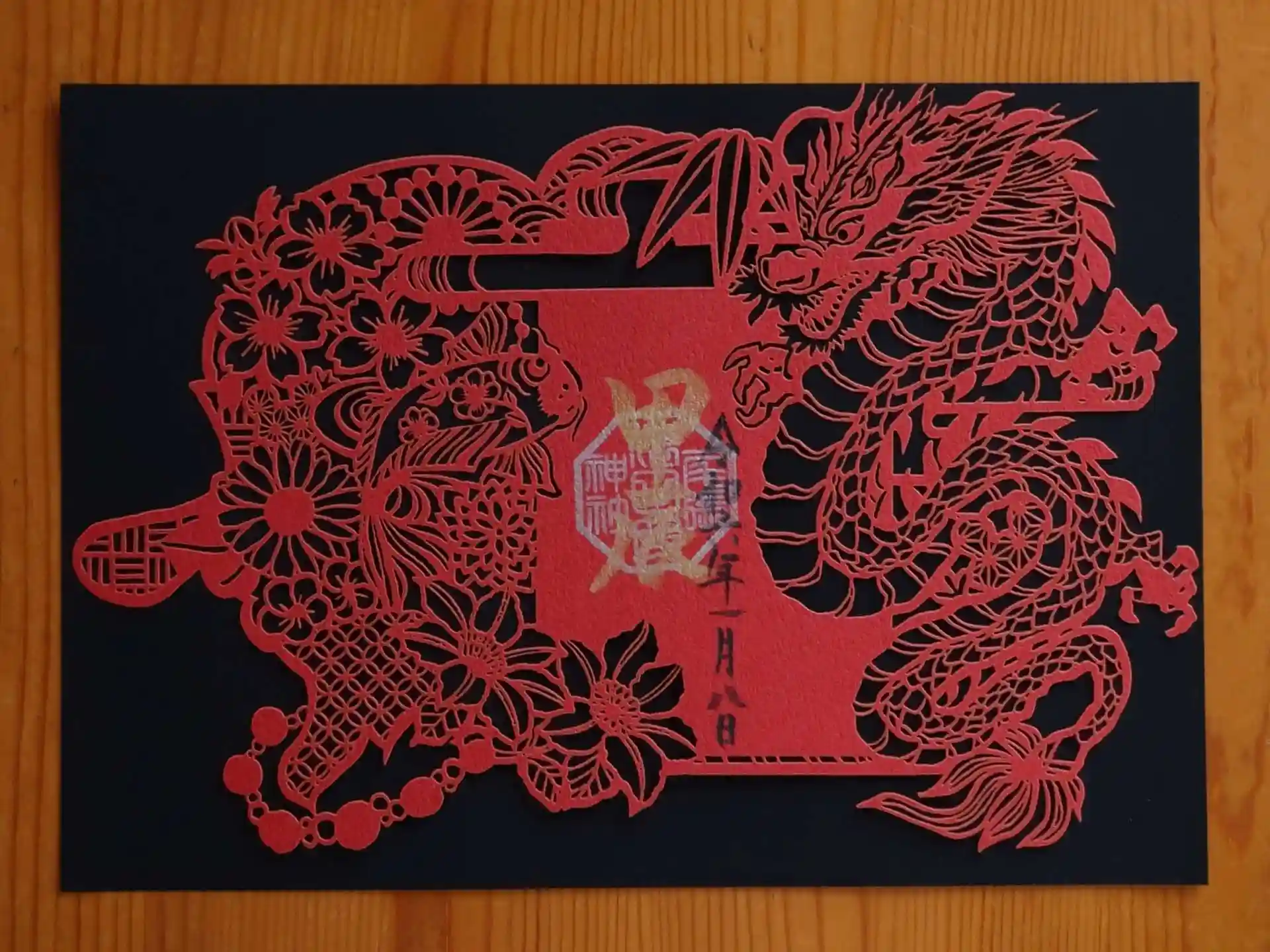 【初詣】つい見惚れてしまい、また龍をあしらった切り絵の御朱印をいただいてしまいました。