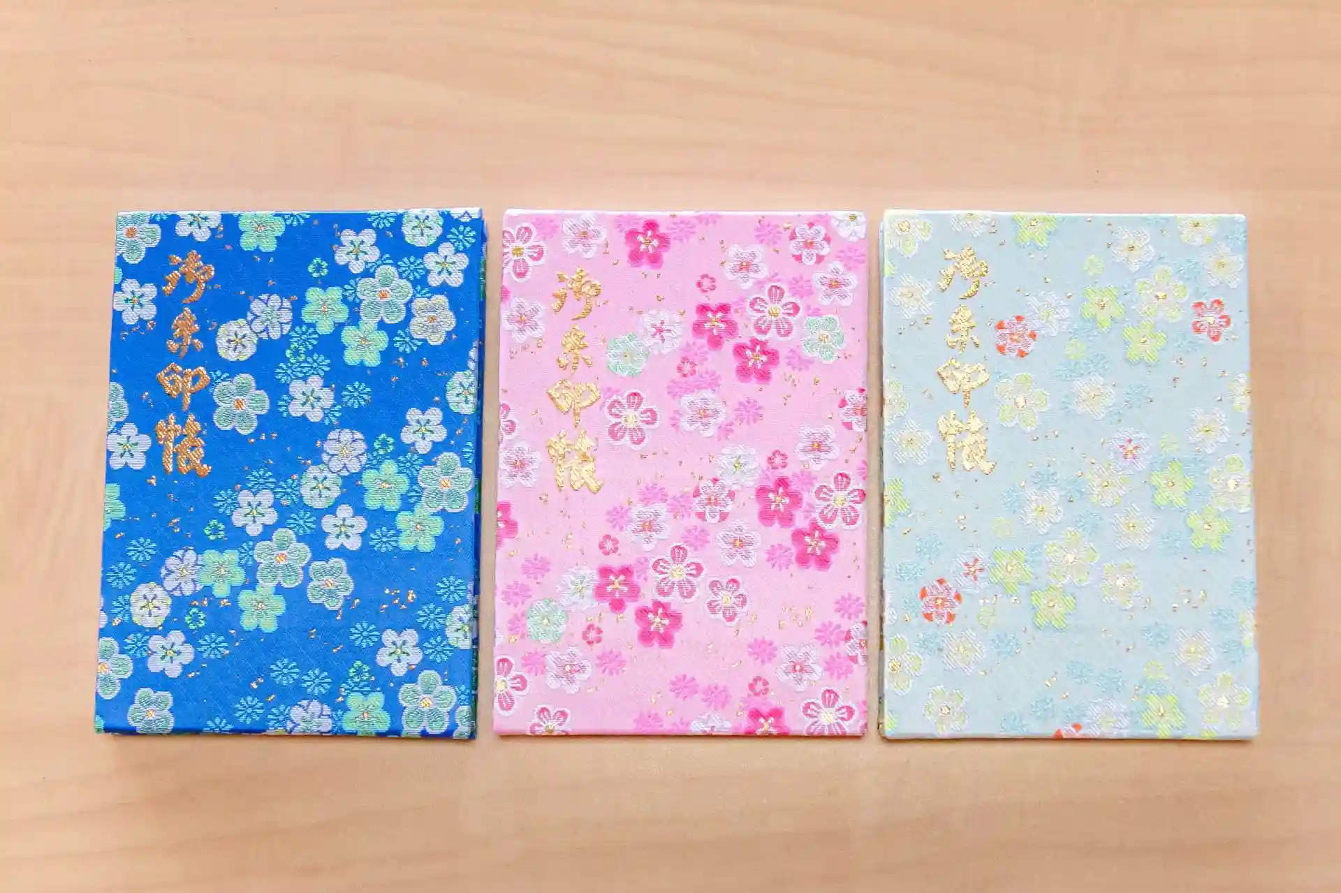 当神社ではちりめんの御朱印帳を3種類の色で授与しております。