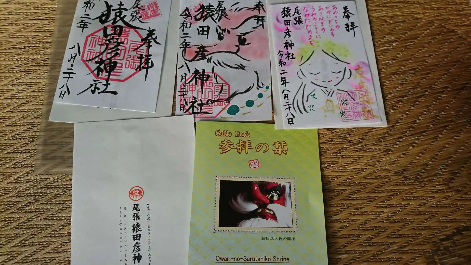 参拝の栞と8月の御朱印が入ってました。
