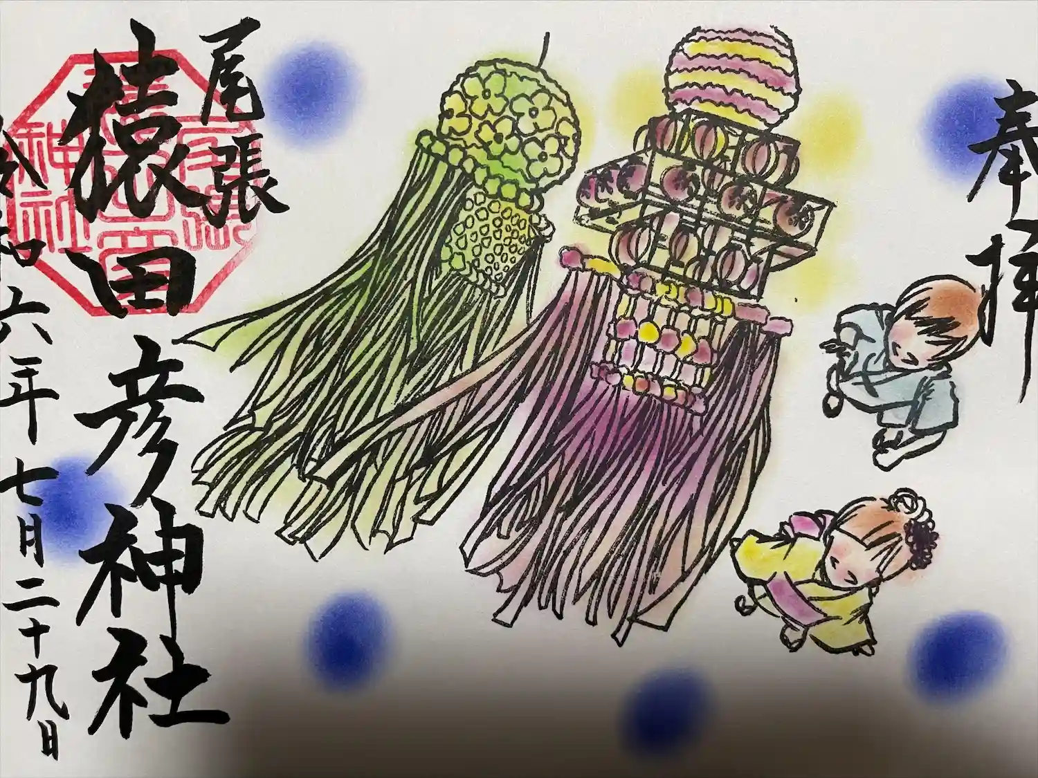 名鉄御朱印めぐりの協力神社です。名鉄特殊印も手書です。かなりの力作で素敵です。