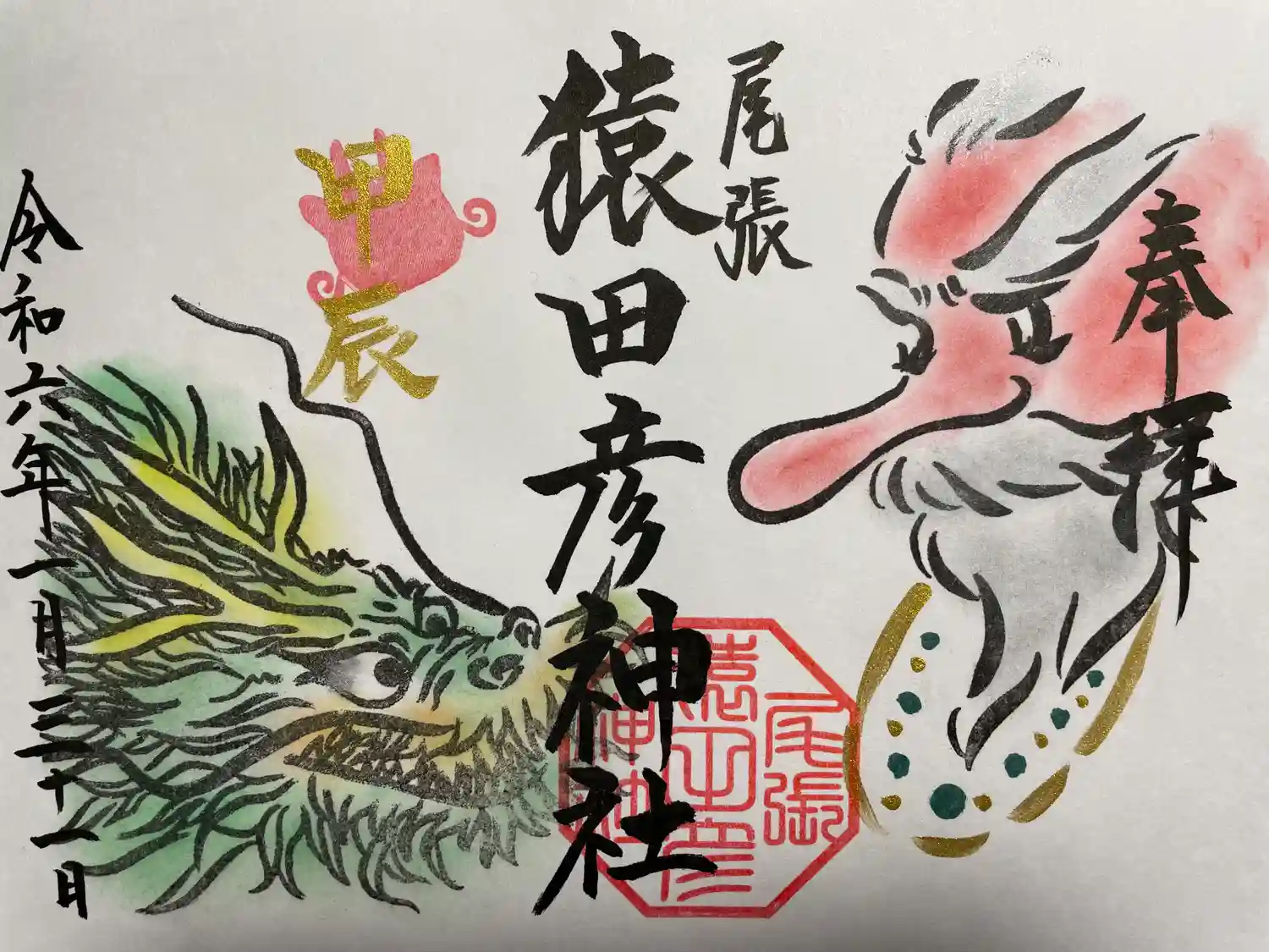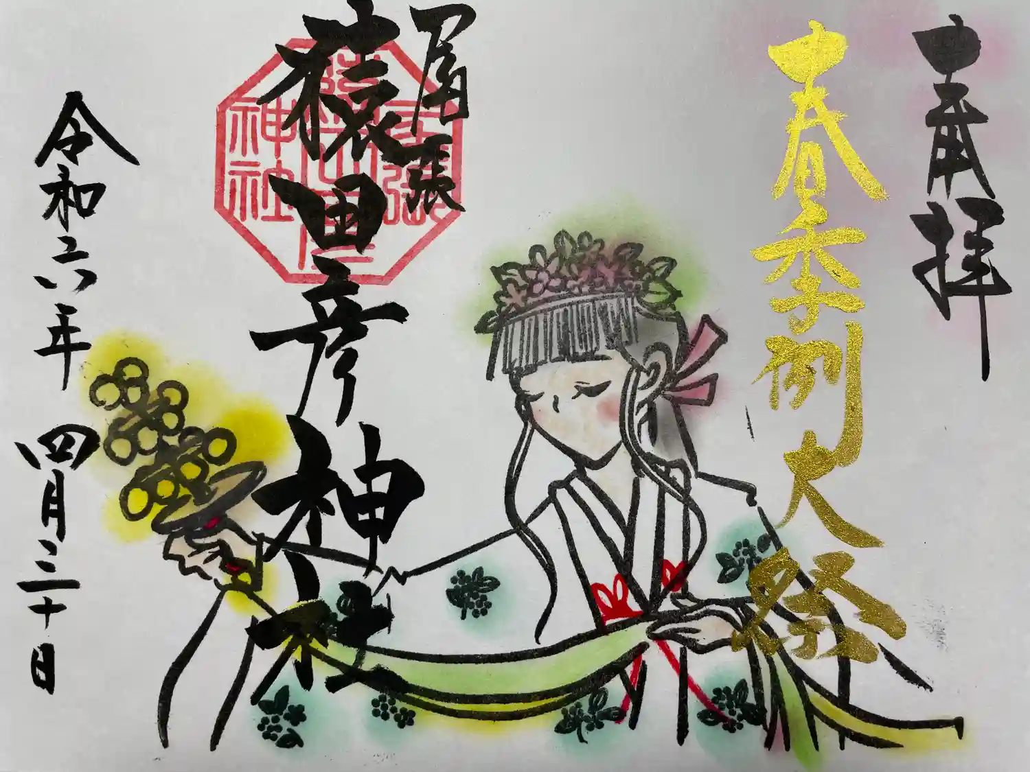 愛知県一宮市にある猿田彦神社の御朱印です。