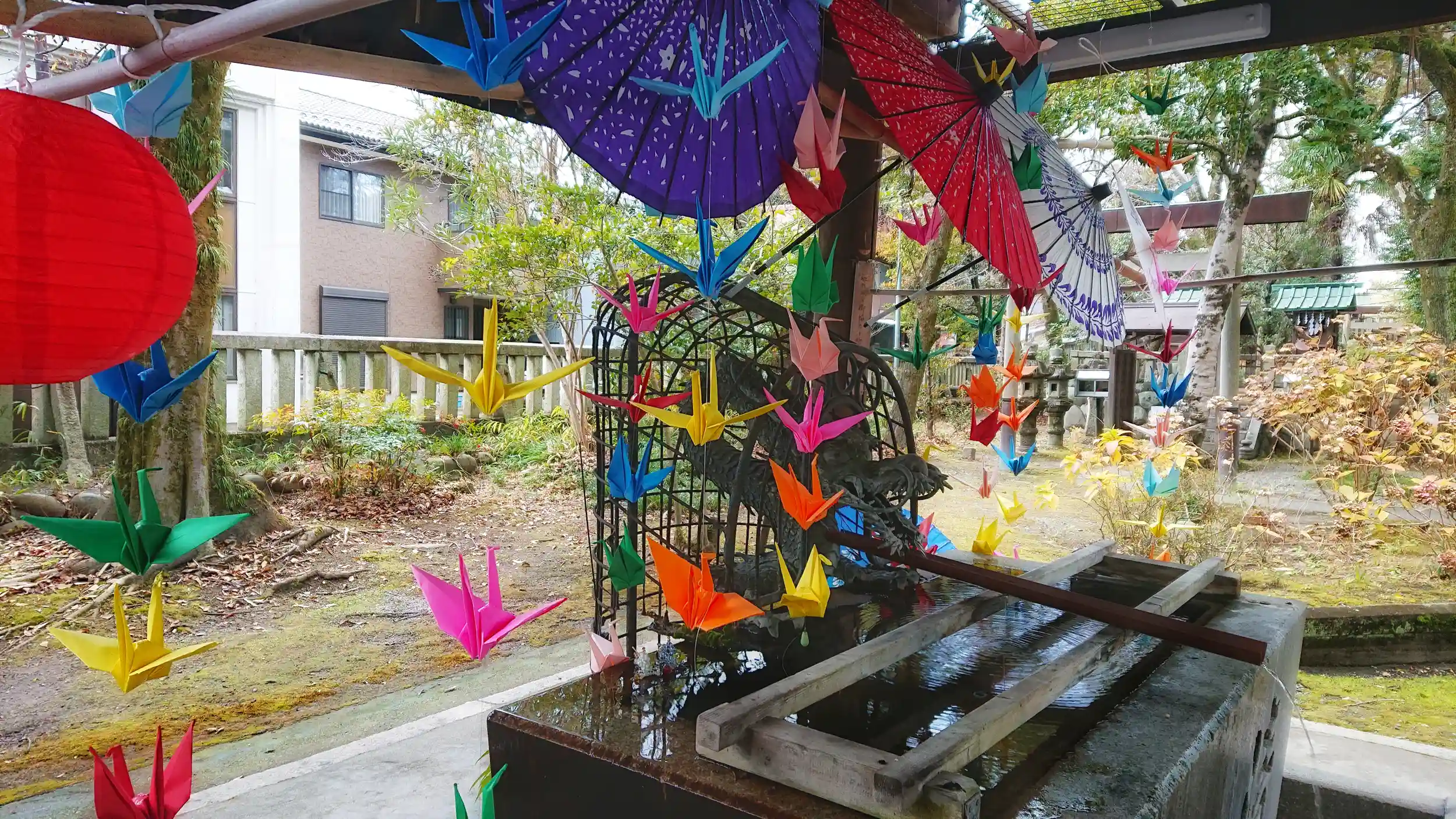 千羽鶴と和傘と提灯が見れた貴重な時間((ε( ーөー)໒꒱· ゚☂️🏮