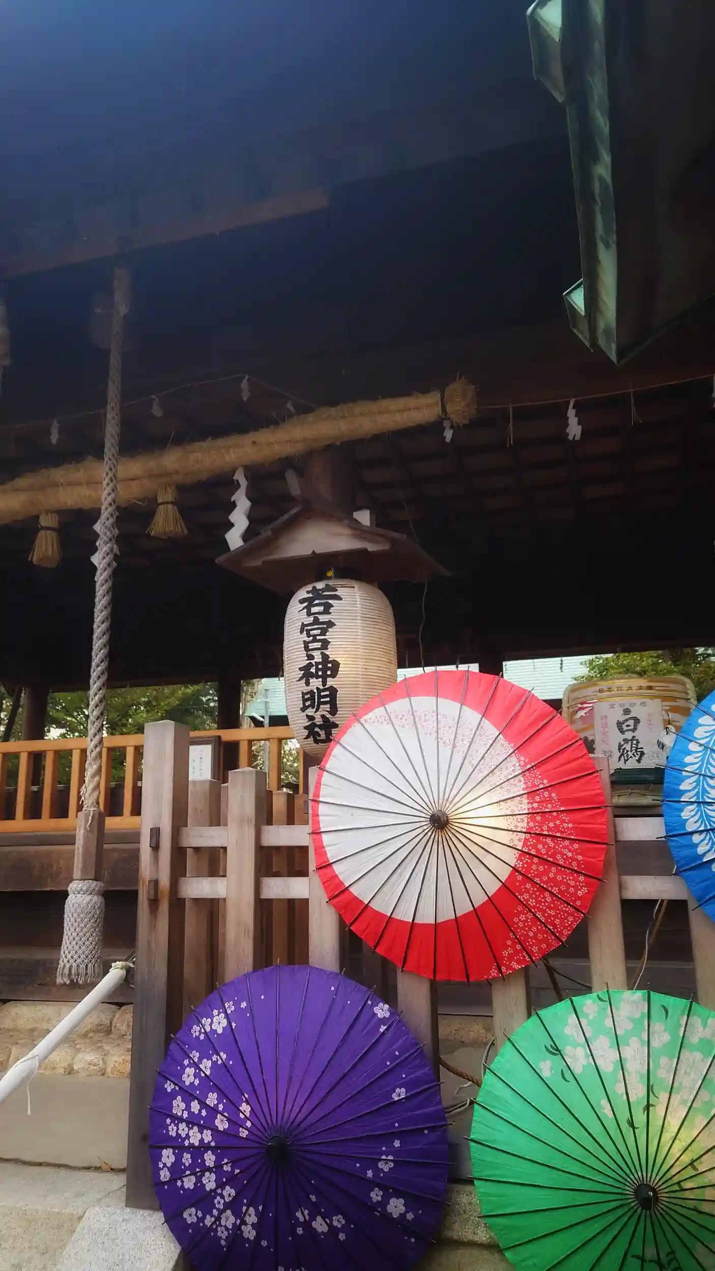 拝殿の和傘が灯されていて