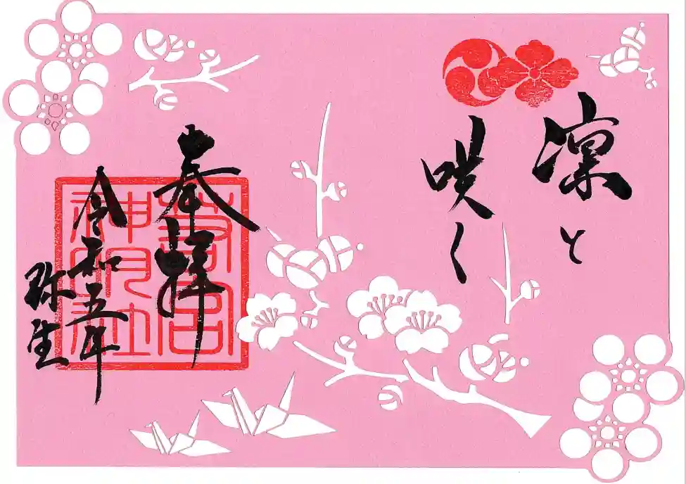 今正に満開を迎える梅の切絵御朱印「凜と咲く」のご案内です。