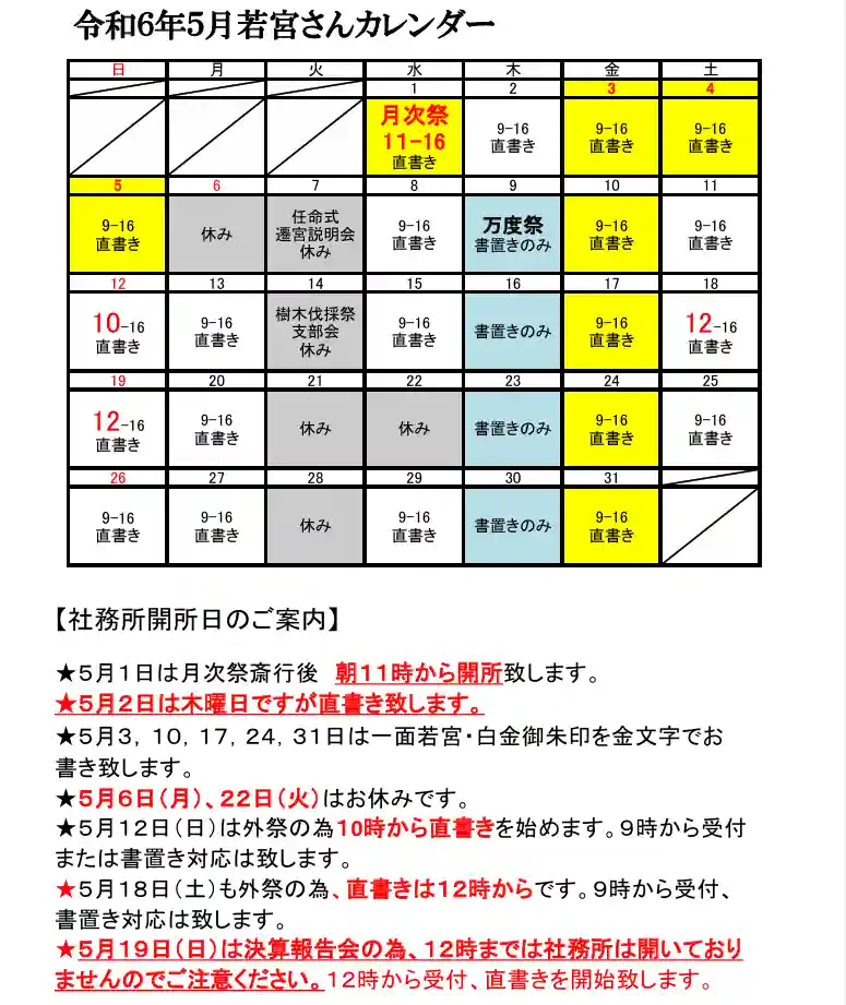 5月御朱印のお知らせ その②+5月社務所予定表です。