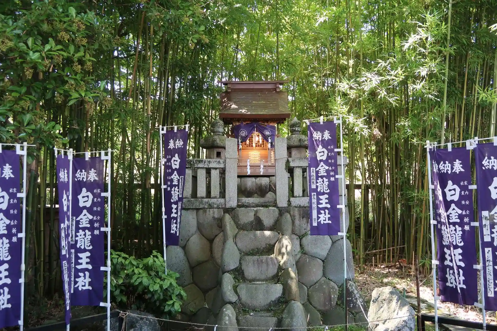 境内末社は、白金龍王社・豊受大神宮・秋葉神社・万度御祓社。